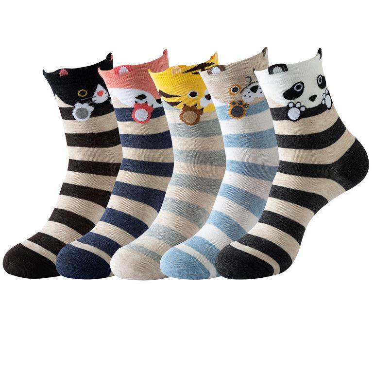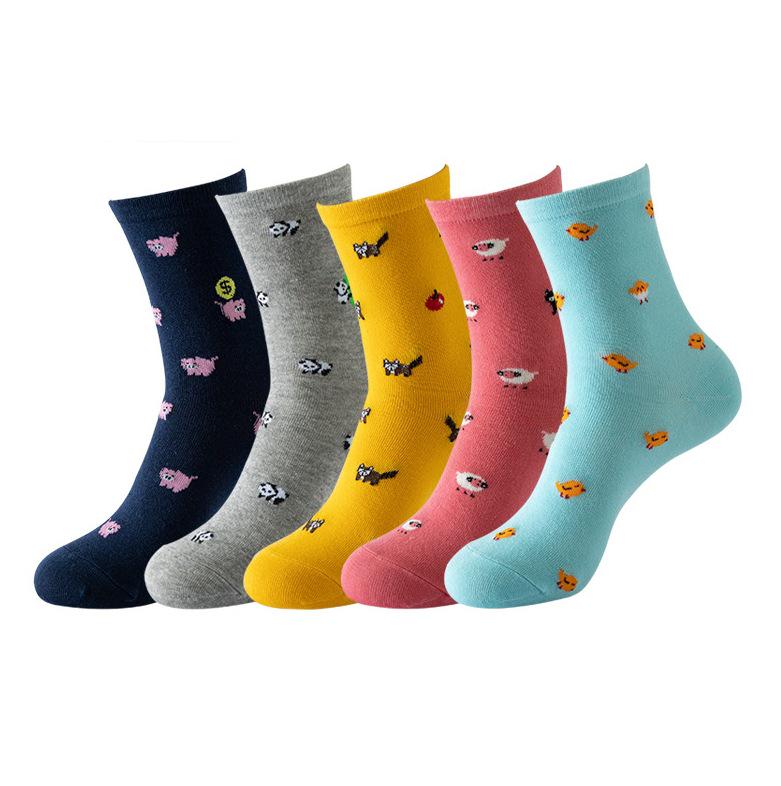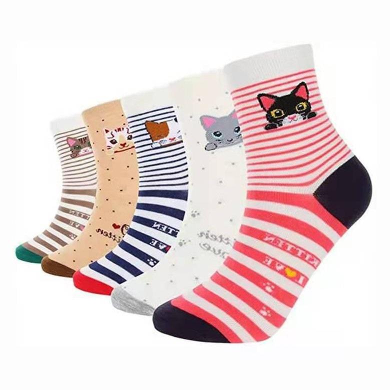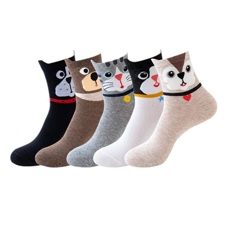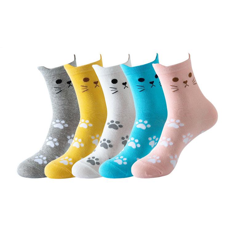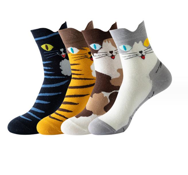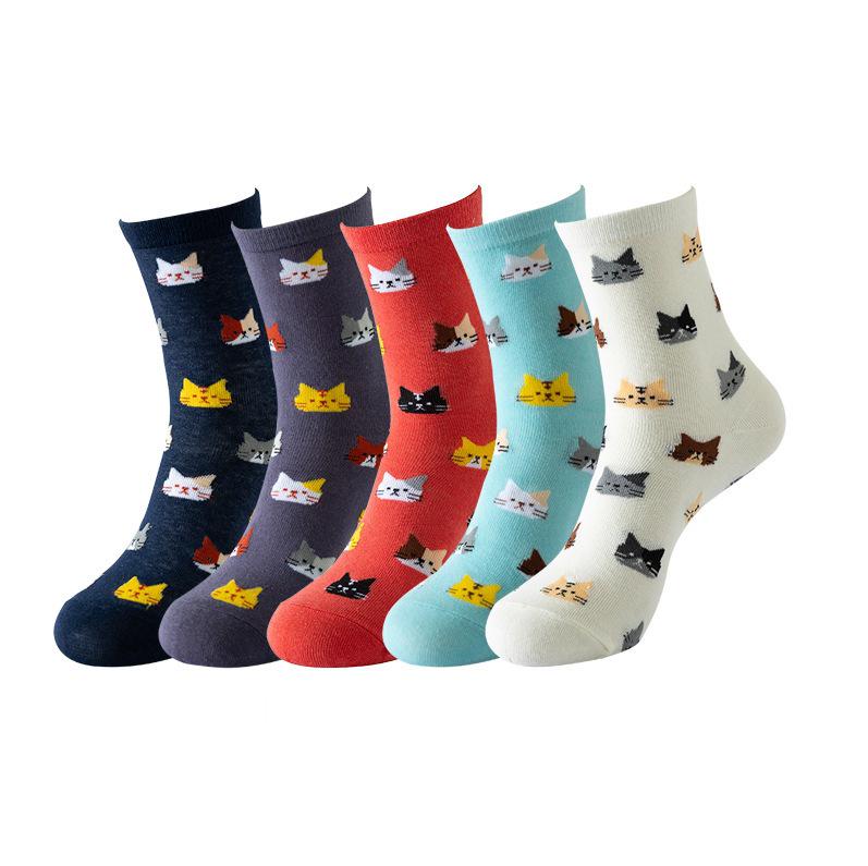Женские носки средней длины из хлопка с рисунком кошки - забавные новинки, длинные чулки с изображением животных