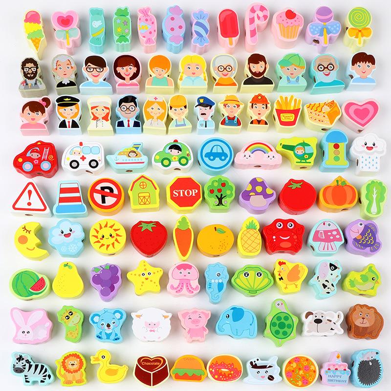 Дошкольное образование Деревянный строительный блок Цифровые животные Овощи Нить бусины Тренировка координации рук и глаз Обучающие игрушки