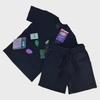 Мужской готический комплект из 2 предметов Y2K: Футболка с круглым вырезом и принтом в стиле хип-хоп + шорты с широкими штанинами на шнурке