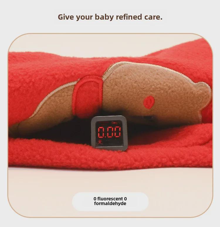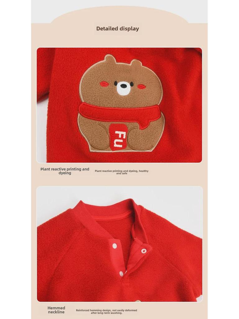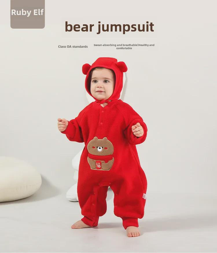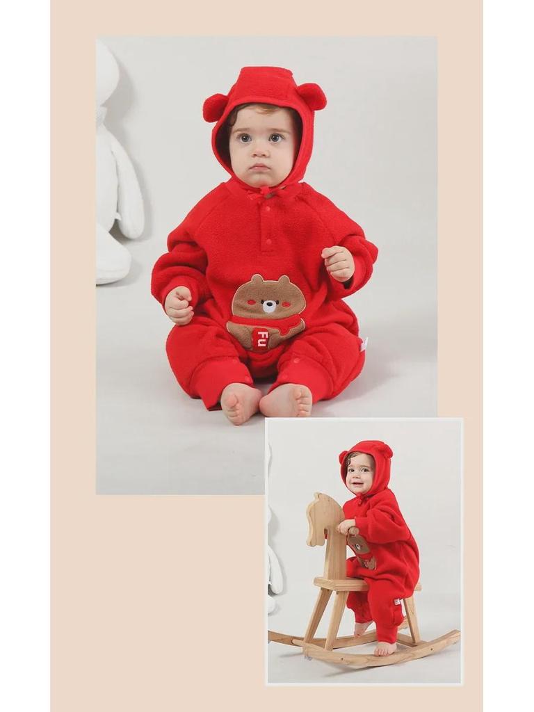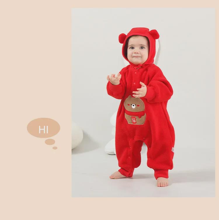 Красный флисовый детский комбинезон: Полная луна, 100 дней, один год - дизайн новогоднего благословения в виде медведя