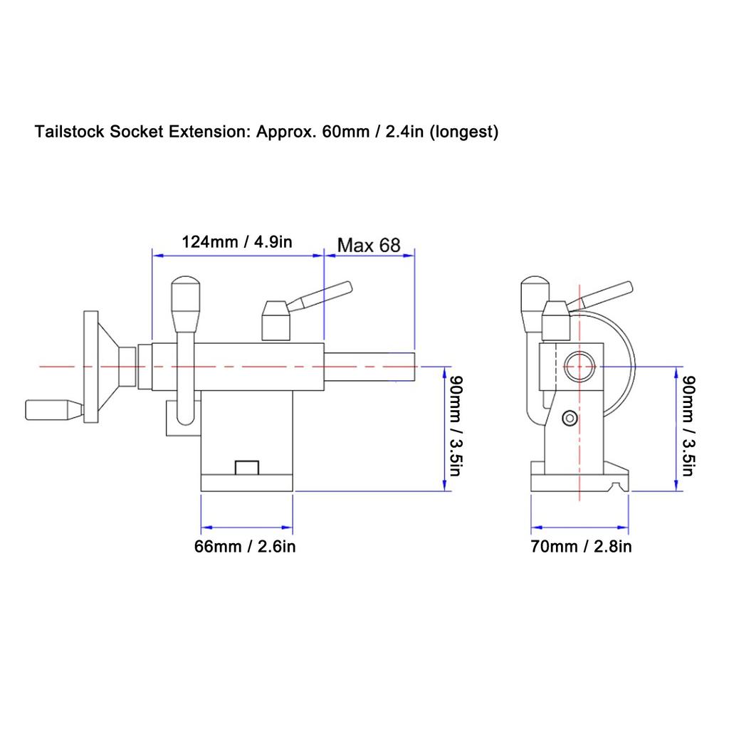 Высота центра хвостовой бабки: приблизительно. 90 мм / 3,5 дюйма