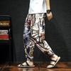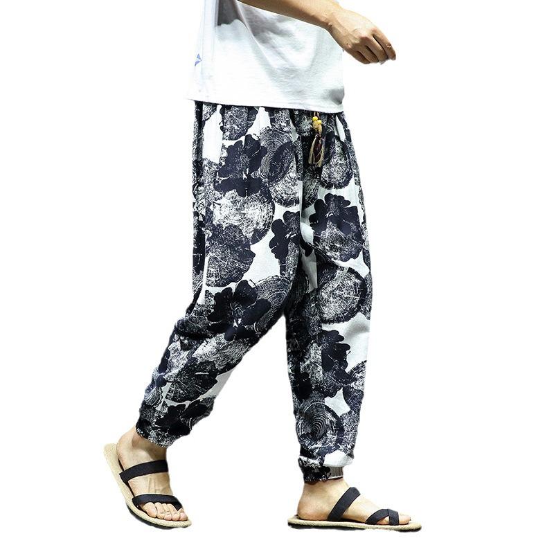 2023 Мужские осенние брюки большого размера из хлопка и льна с цветочным принтом в стиле ретро Slim-Fit