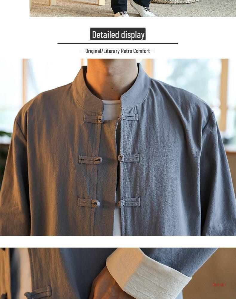 Ощутите идеальное сочетание традиций и комфорта в этом мужском костюме, изготовленном из роскошной хлопковой смеси.. Этот костюм идеально подходит для медитации и чайных церемоний. Он выполнен в древнекитайском стиле, отражающем суть Чжуншань Ханьфу.. Подходит для ношения весной, летом и осенью. Легкая и дышащая ткань обеспечивает свободу движений, что делает ее идеальной как для повседневных, так и для официальных мероприятий.