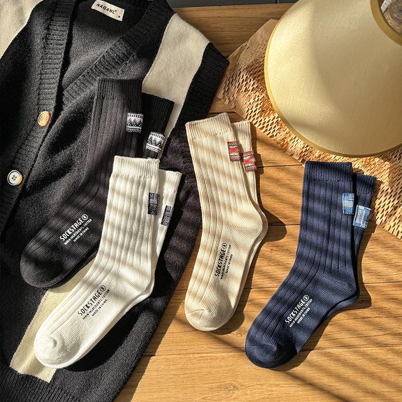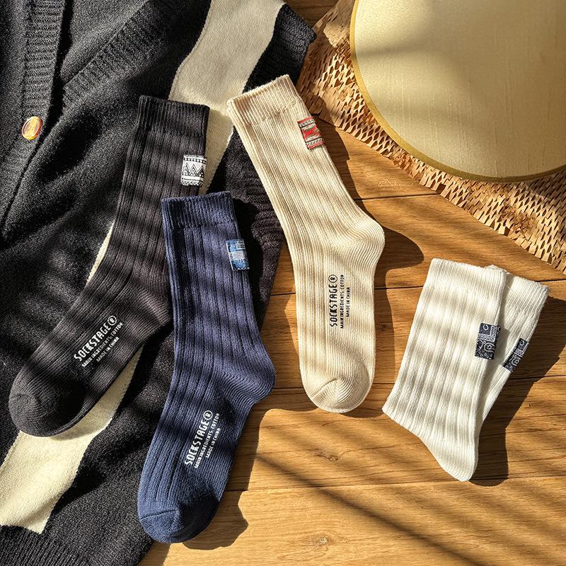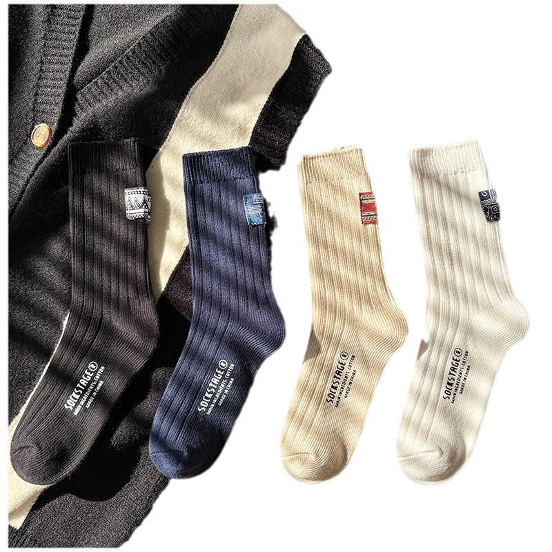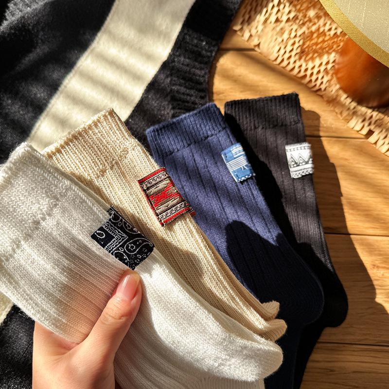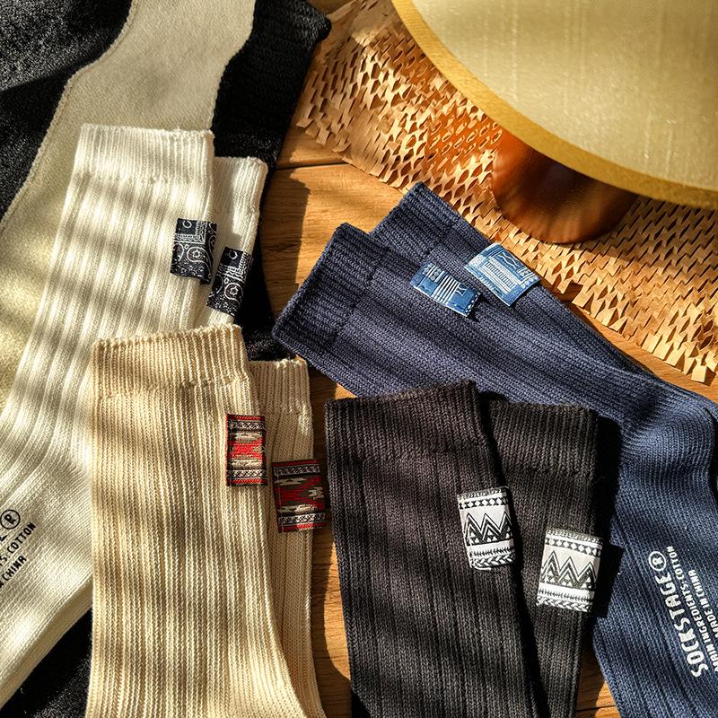 Весенние этнические ретро хлопковые носки средней длины - унисекс, модная толстая нить