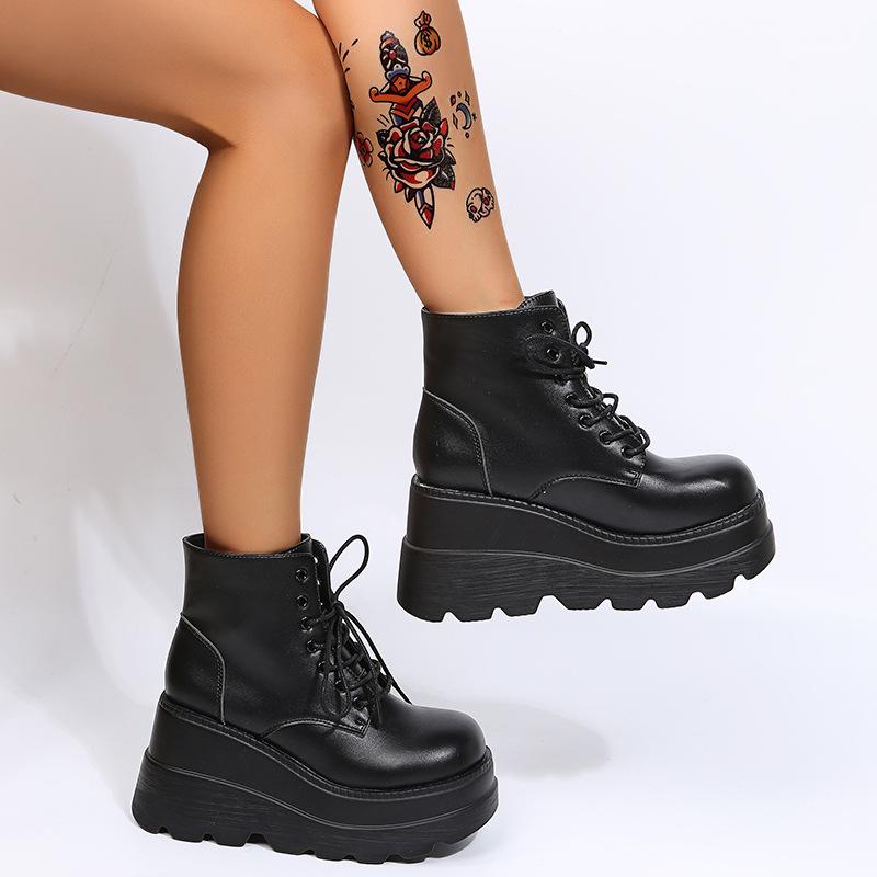Поднимите свой стиль на новый уровень с этими женскими ботинками Martin на платформе, созданными для тех, кто любит нотку уличного панка.. Эти ботинки с гладким верхом из полиуретана, украшенные шнуровкой, станут незаменимой вещью для тех, кто следит за модой.. Прочная резиновая подошва обеспечивает комфорт и устойчивость, а полиуретановая стелька обеспечивает дополнительную поддержку при ношении в течение всего дня.. Эти ботинки с подкладкой из искусственной кожи сочетают в себе стиль и функциональность.. Идеально подходит для тех, кто ищет привлекательную обувь большого размера, не идущую на компромиссы с комфортом.