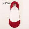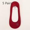 5 пар красных носков, женские короткие носки-лодочки, без протечек, с ультра-мелким носком и высоким каблуком, без следов, нескользящие, невидимые, без спадающего каблука