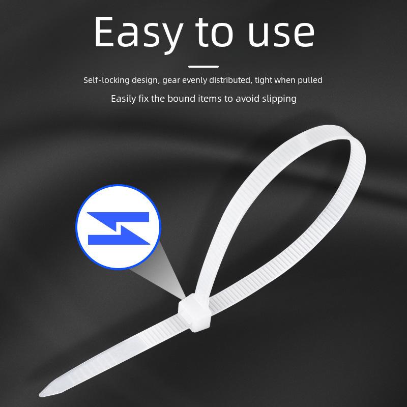 Self-locking Black and White Nylon Cable Ties - Buckle Type Binding Belt