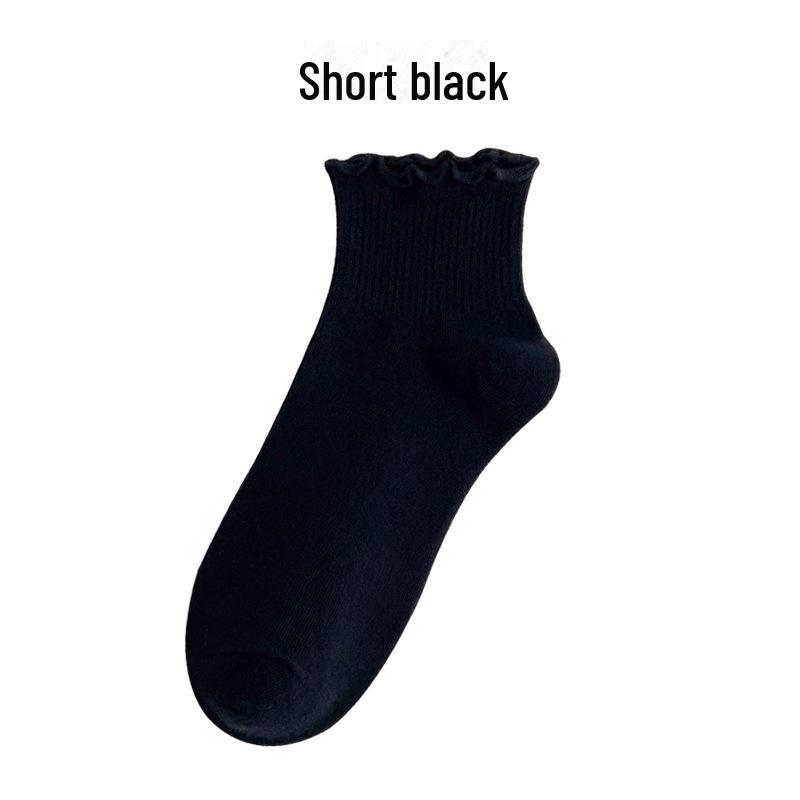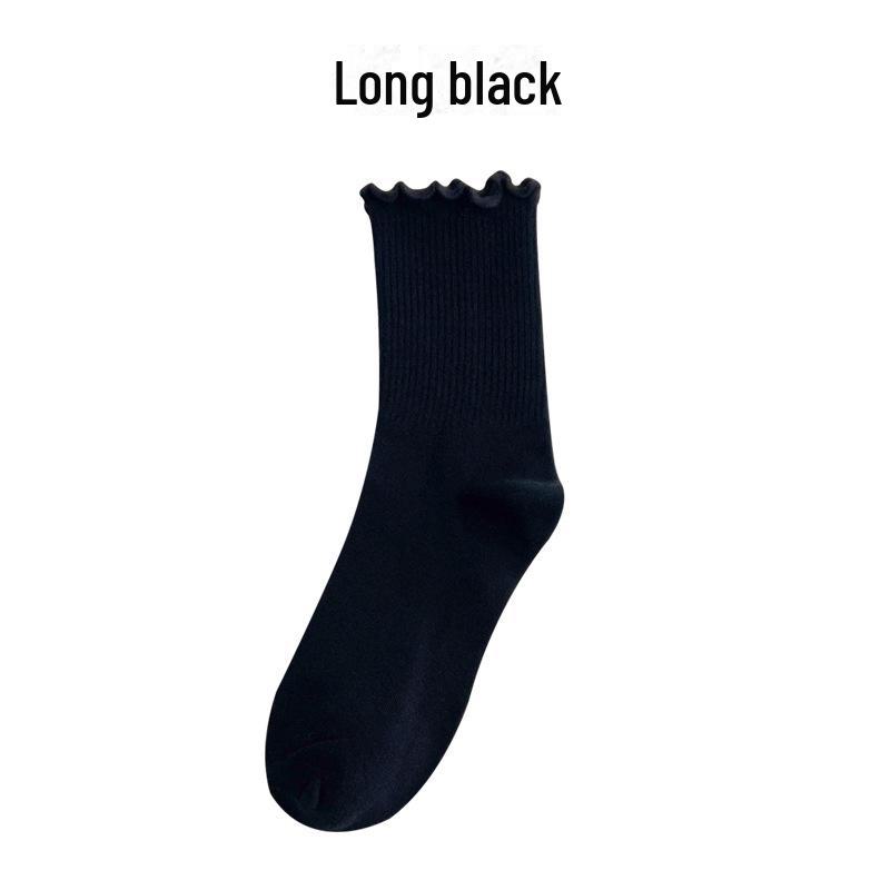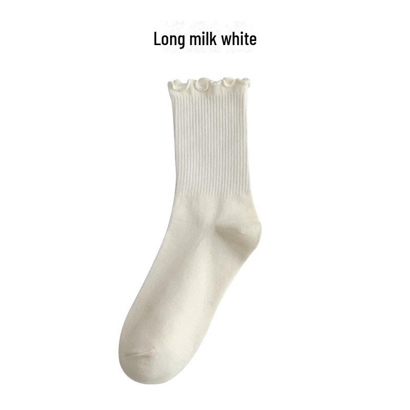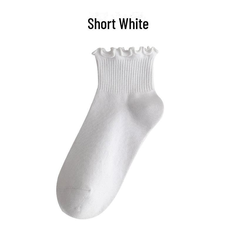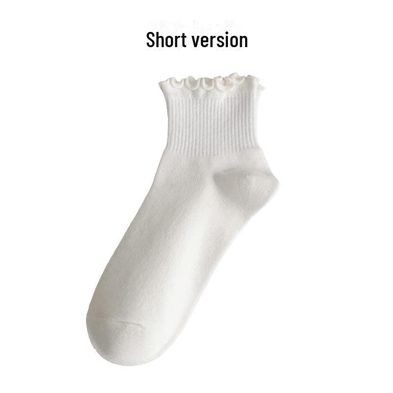 Женские весенние и летние хлопковые носки средней длины: Однотонный, в японском стиле, с кружевной отделкой