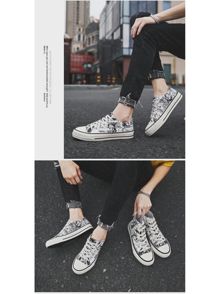Мужские высокие парусиновые туфли с рисунком в стиле аниме-граффити – модные повседневные кроссовки на весну и осень для студентов