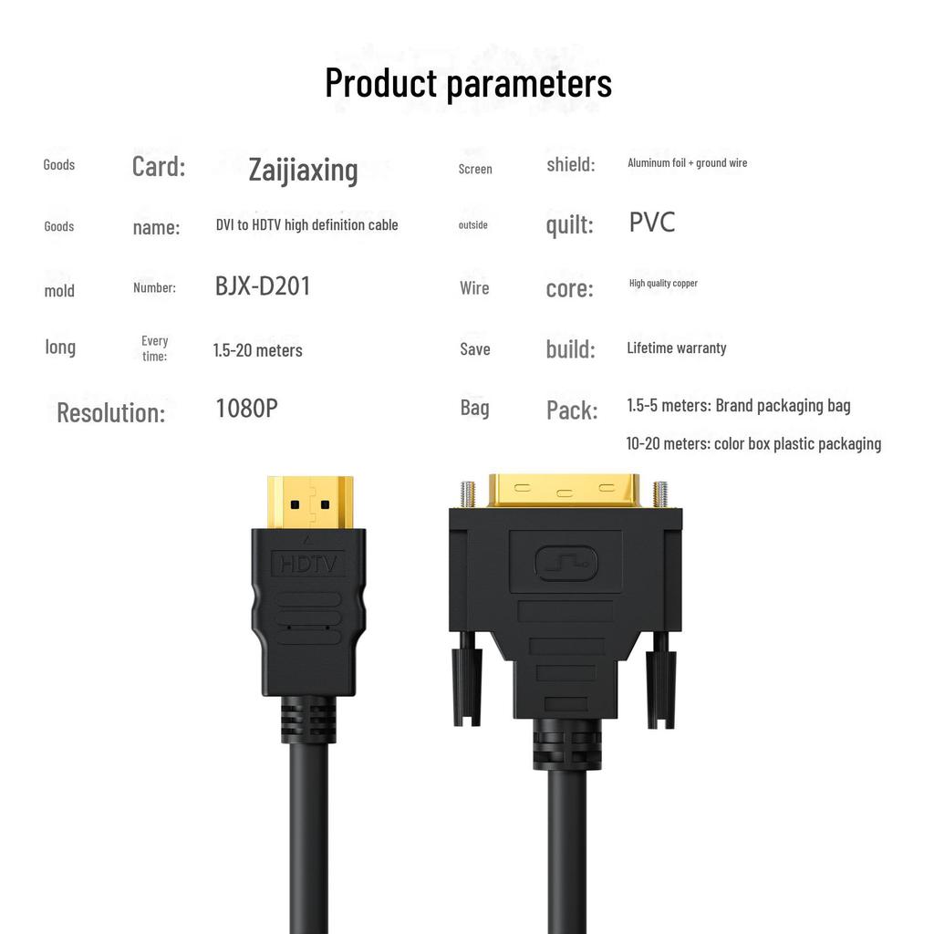 Двусторонний кабель-адаптер высокой четкости HDMI-DVI для подключения телевизора и компьютера