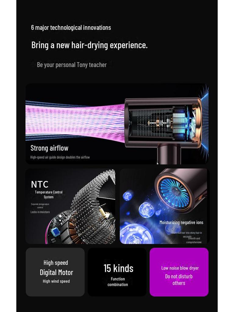 Высокоскоростной фен с интеллектуальным контролем температуры и цифровым дисплеем