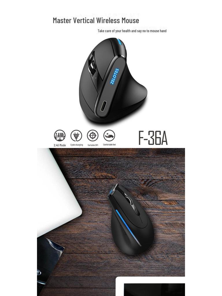 ZELOTES F36A Вертикальная эргономичная беспроводная перезаряжаемая офисная мышь