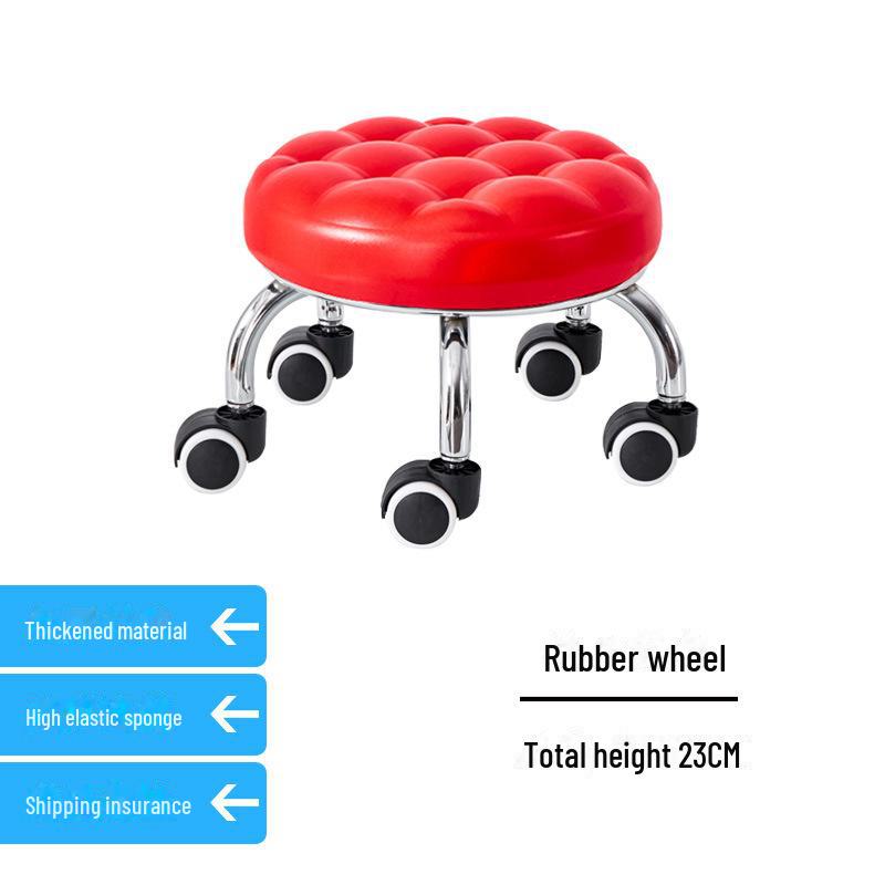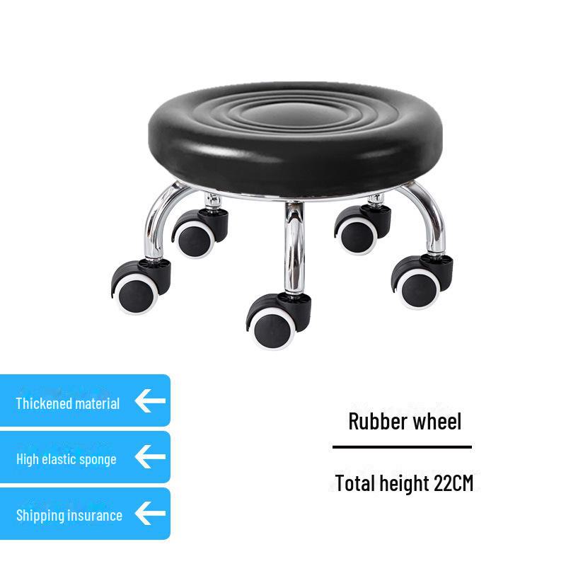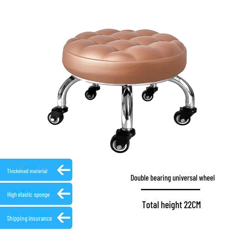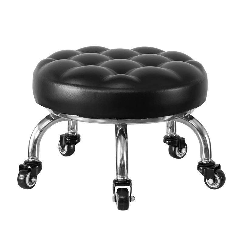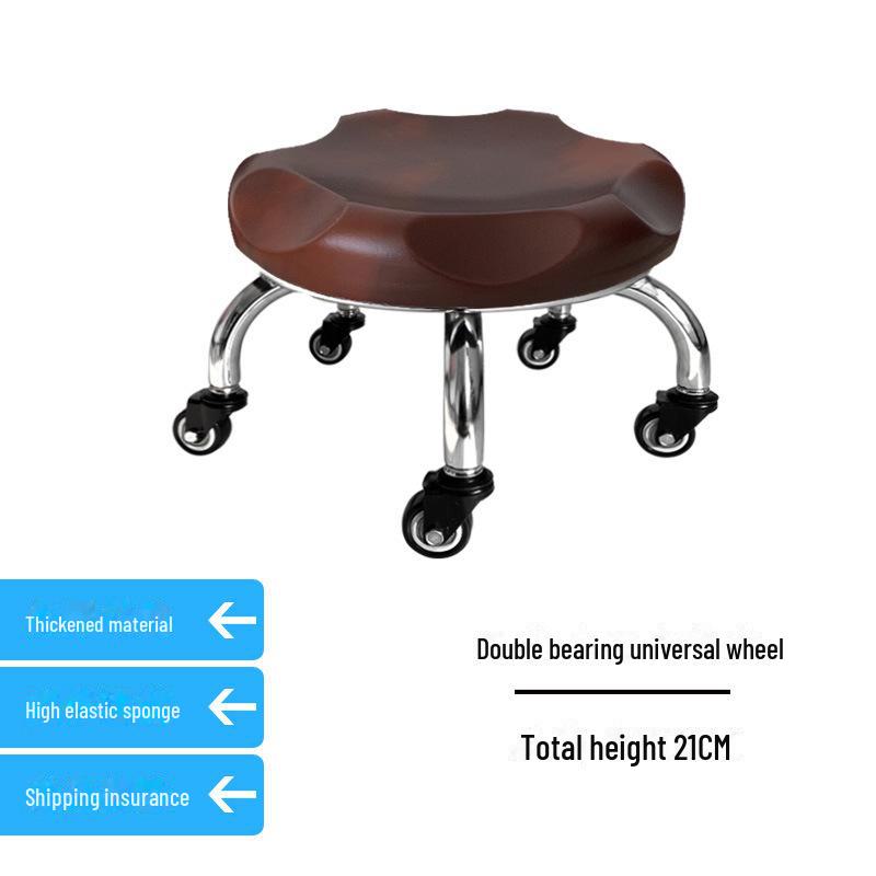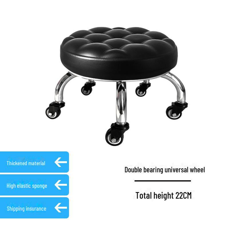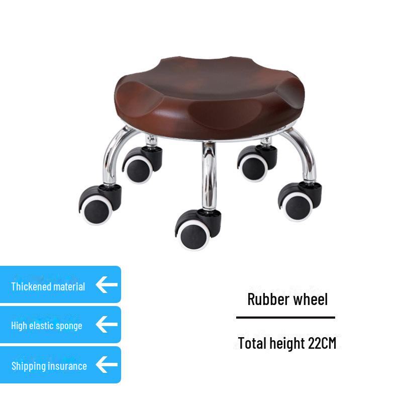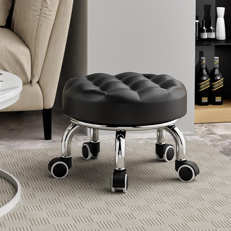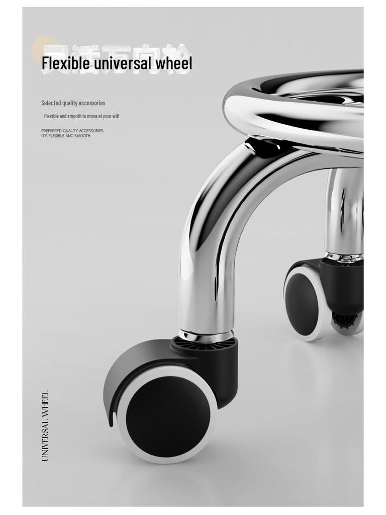 Бесшумный мобильный косметологический стул с универсальными колесами — многофункциональный, низкопрофильный, круглый дизайн для использования дома или в студии.