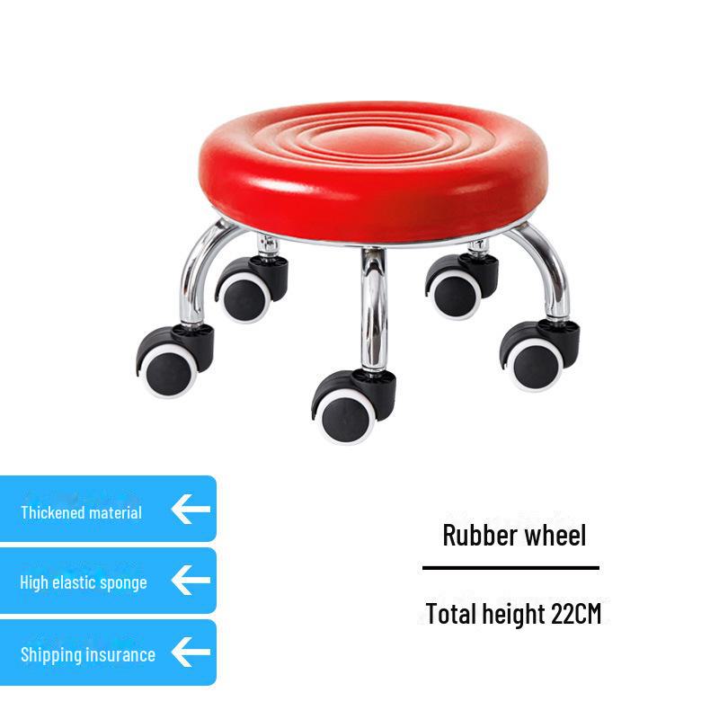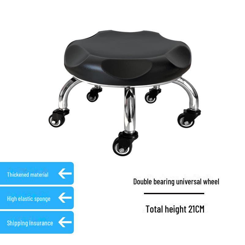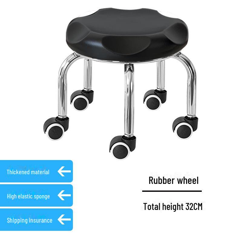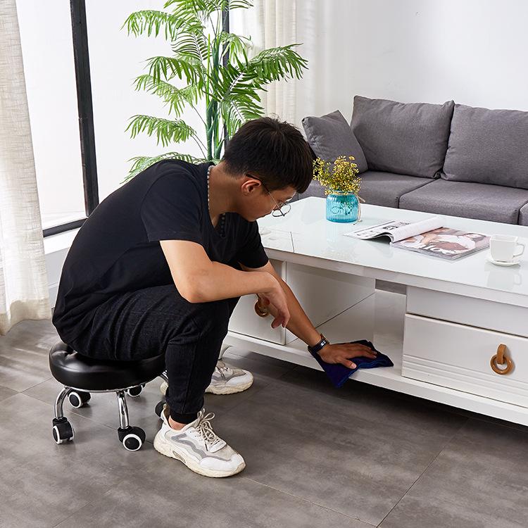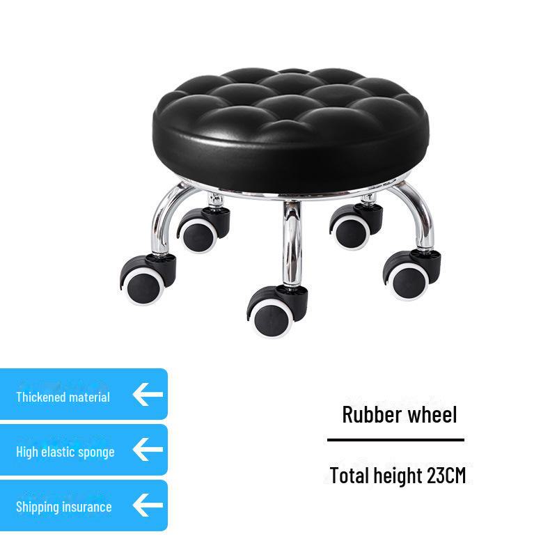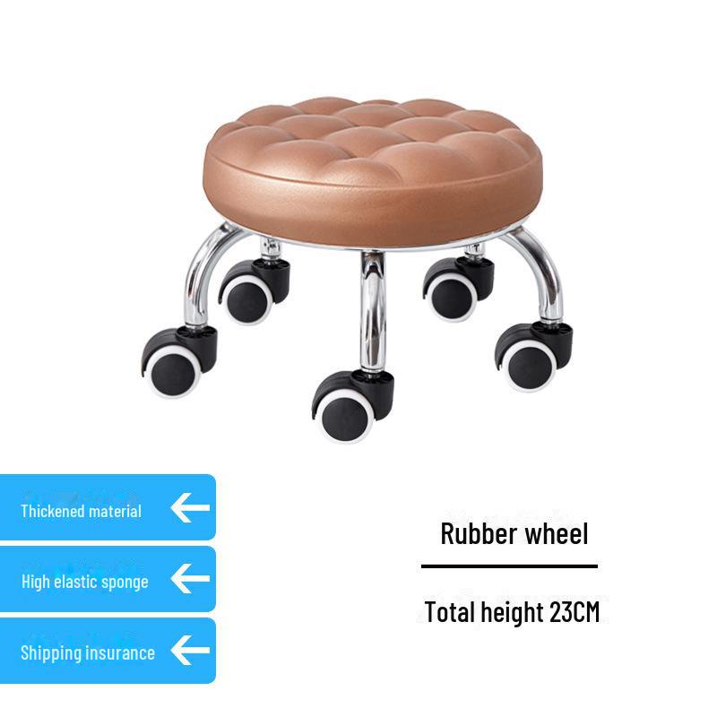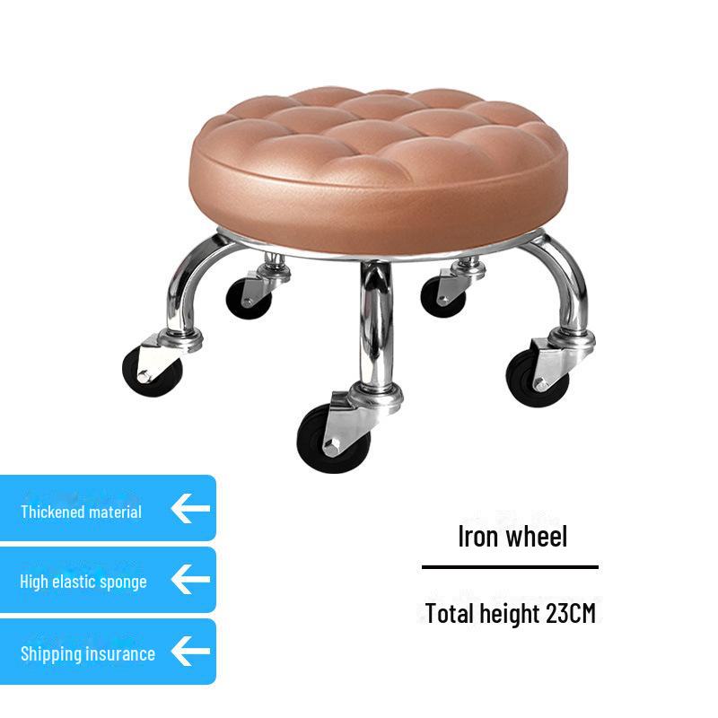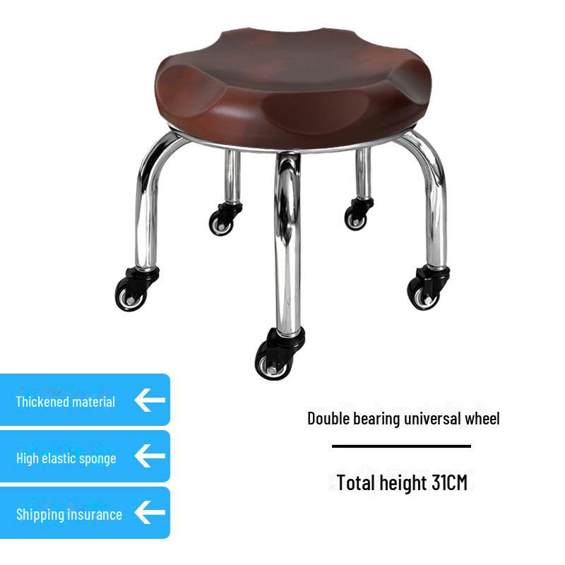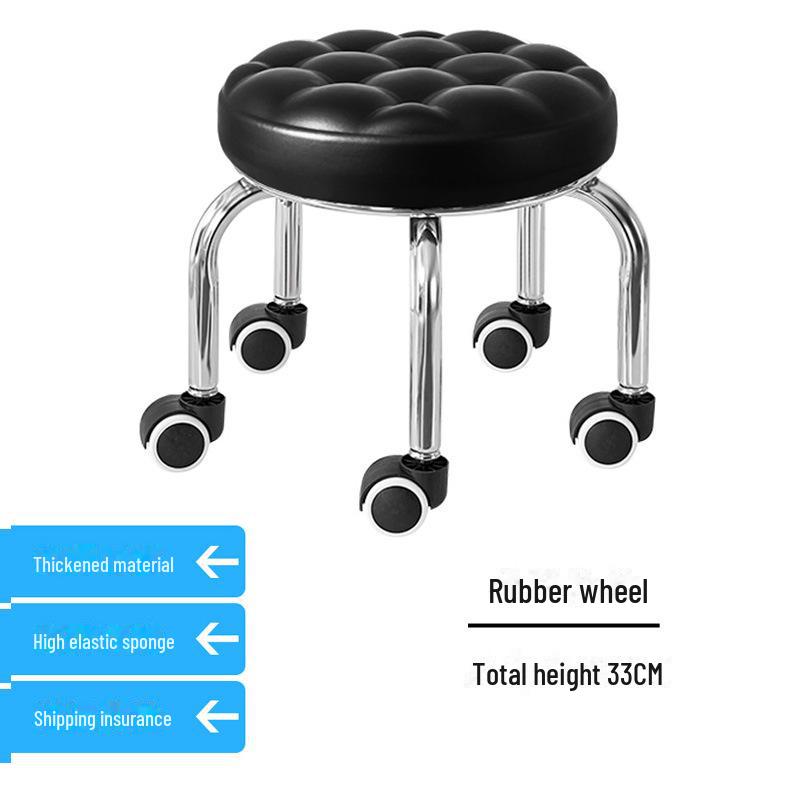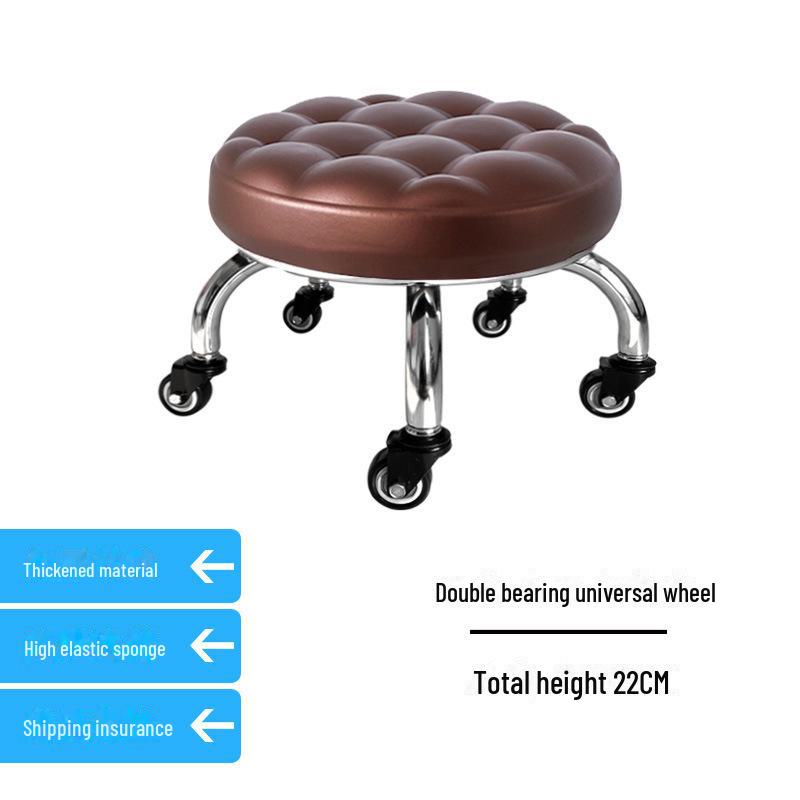 Бесшумный мобильный косметологический стул с универсальными колесами — многофункциональный, низкопрофильный, круглый дизайн для использования дома или в студии.