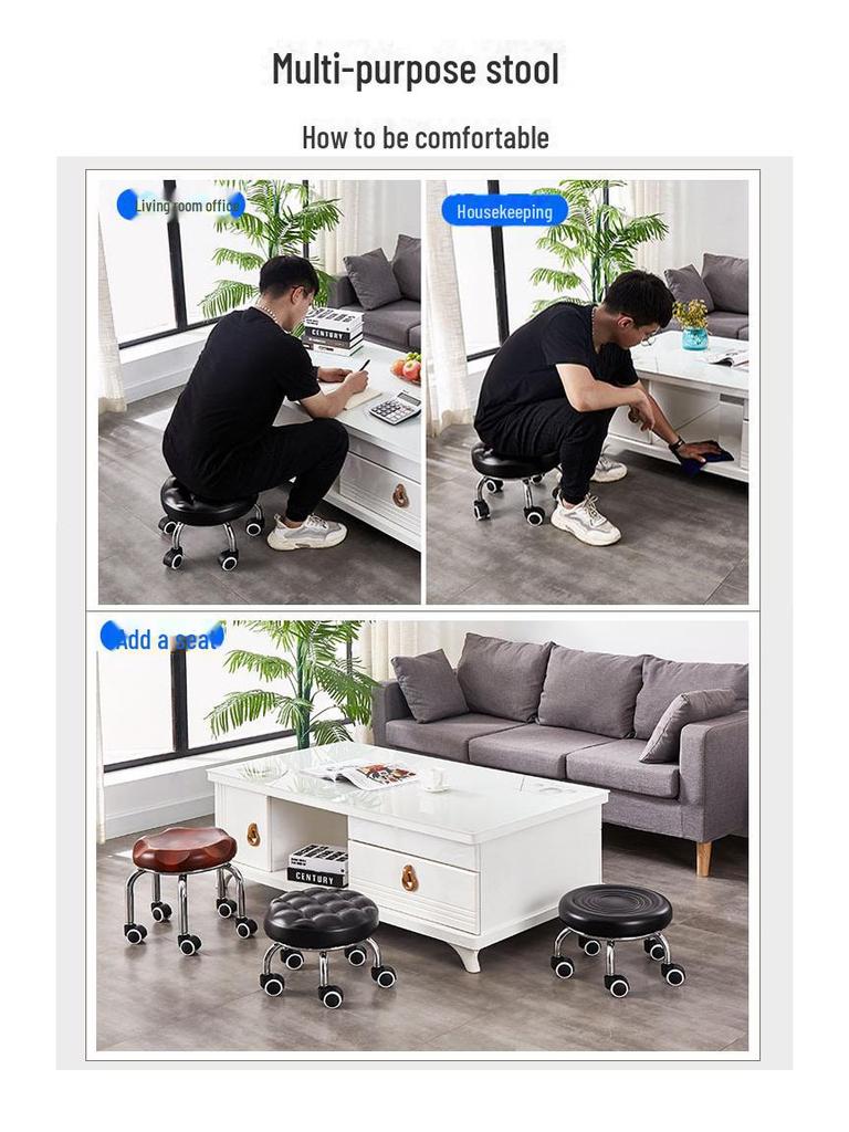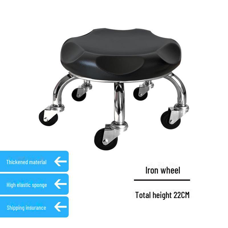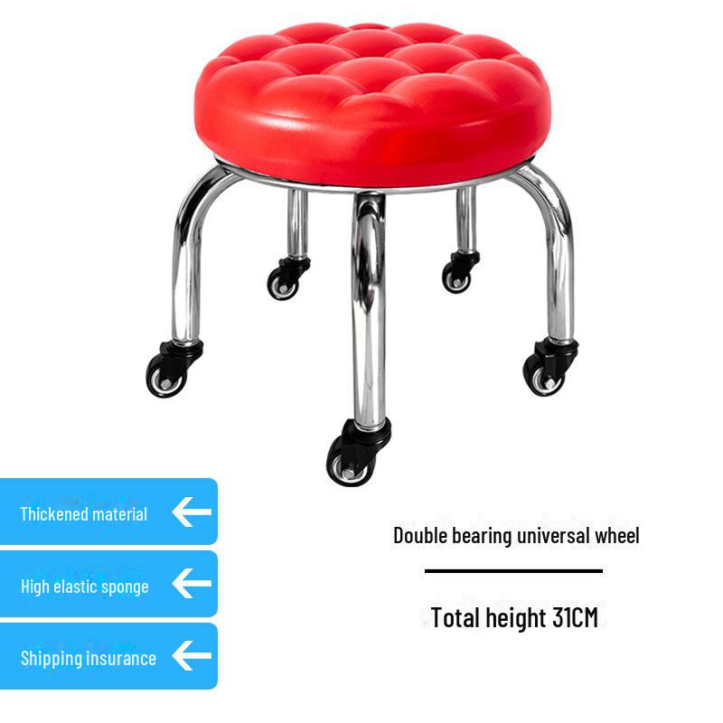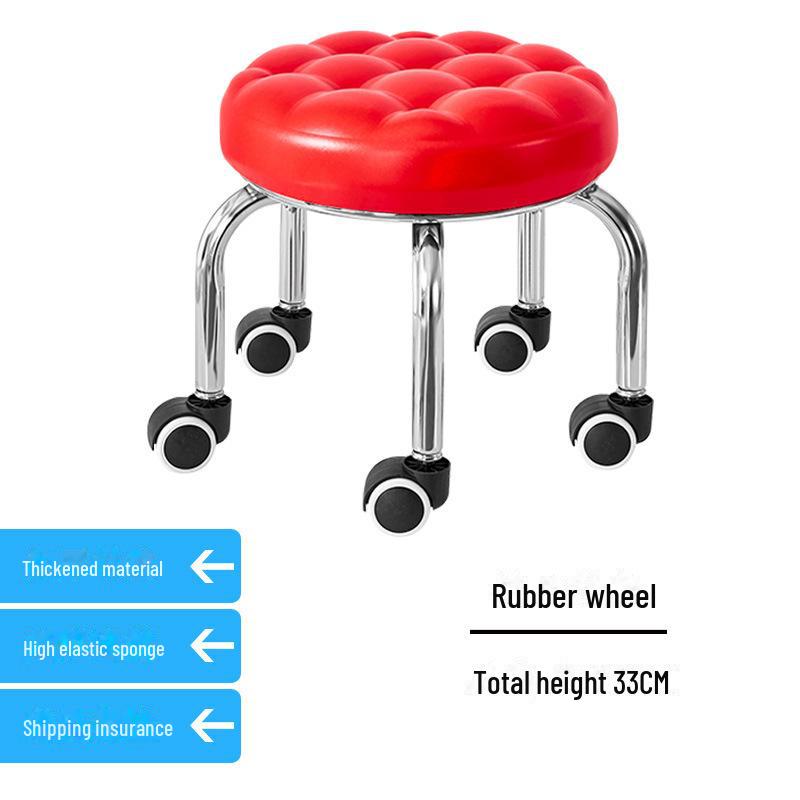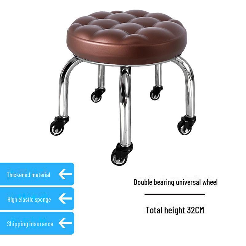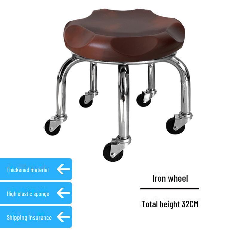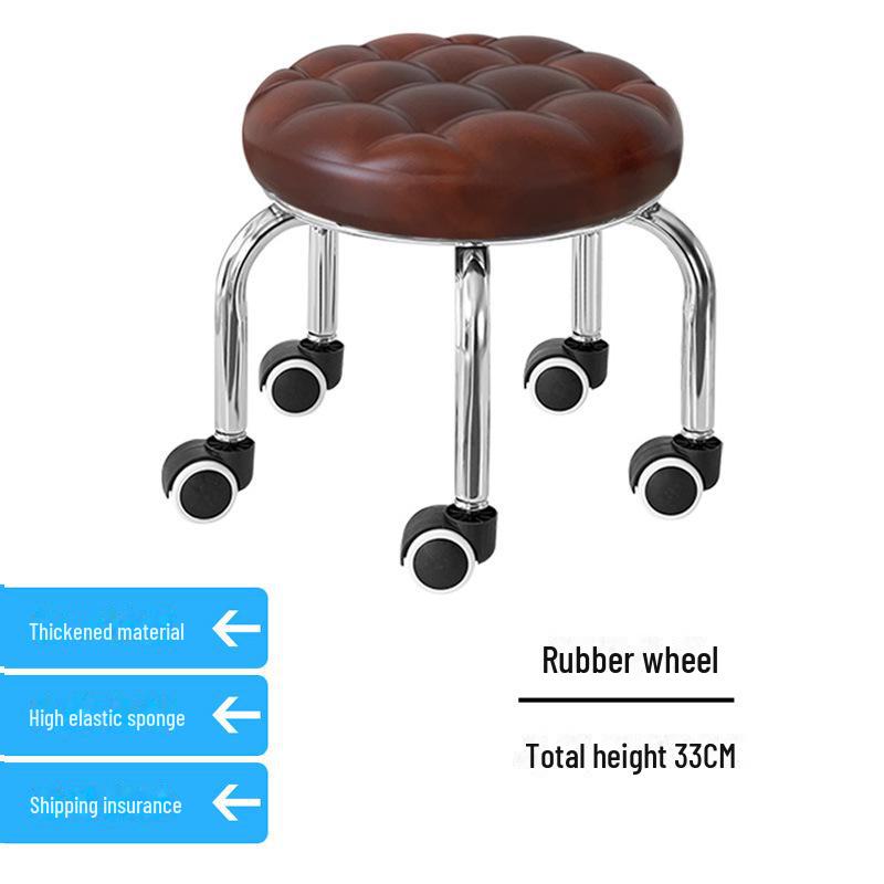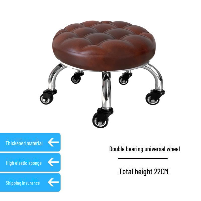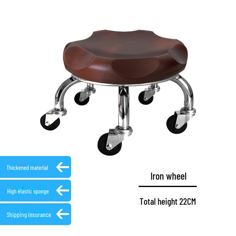 Бесшумный мобильный косметологический стул с универсальными колесами — многофункциональный, низкопрофильный, круглый дизайн для использования дома или в студии.