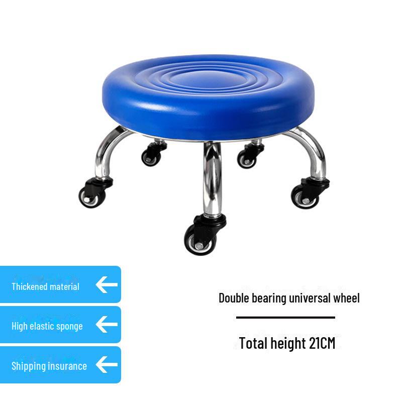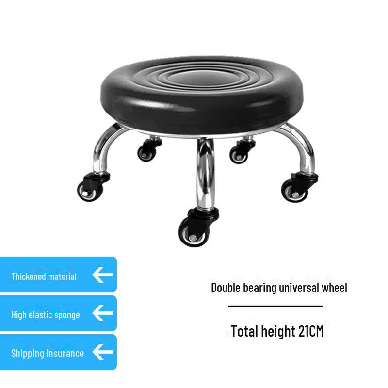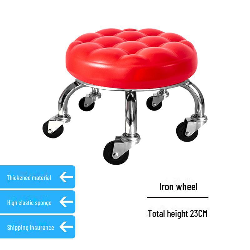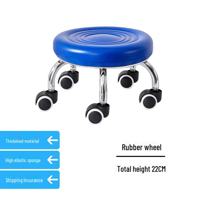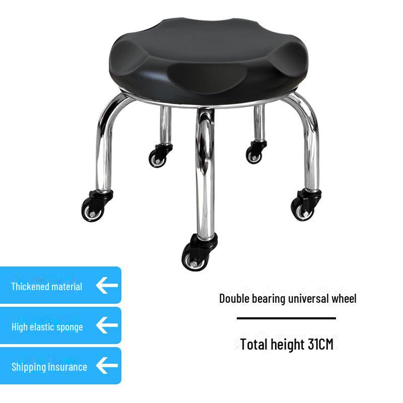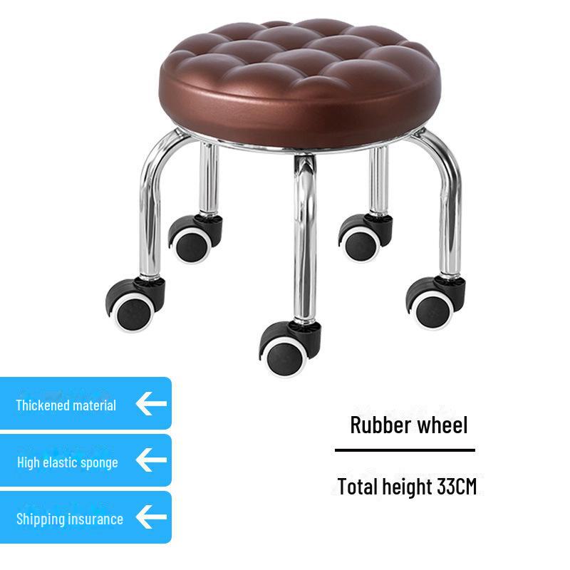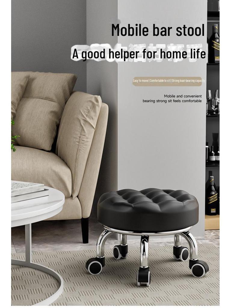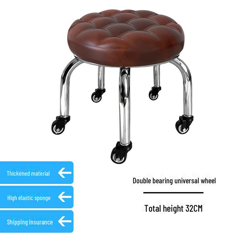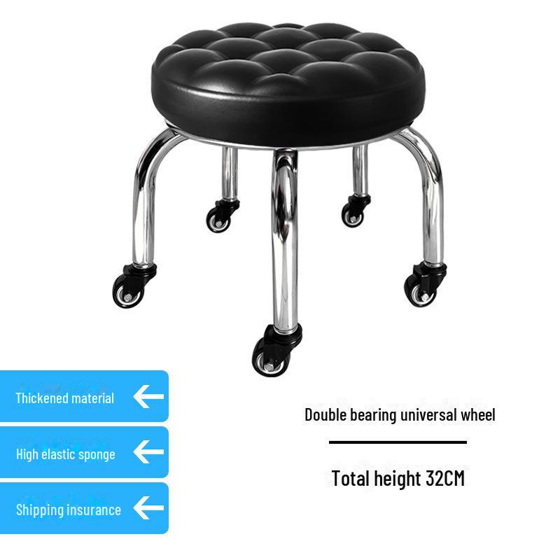 Бесшумный мобильный косметологический стул с универсальными колесами — многофункциональный, низкопрофильный, круглый дизайн для использования дома или в студии.