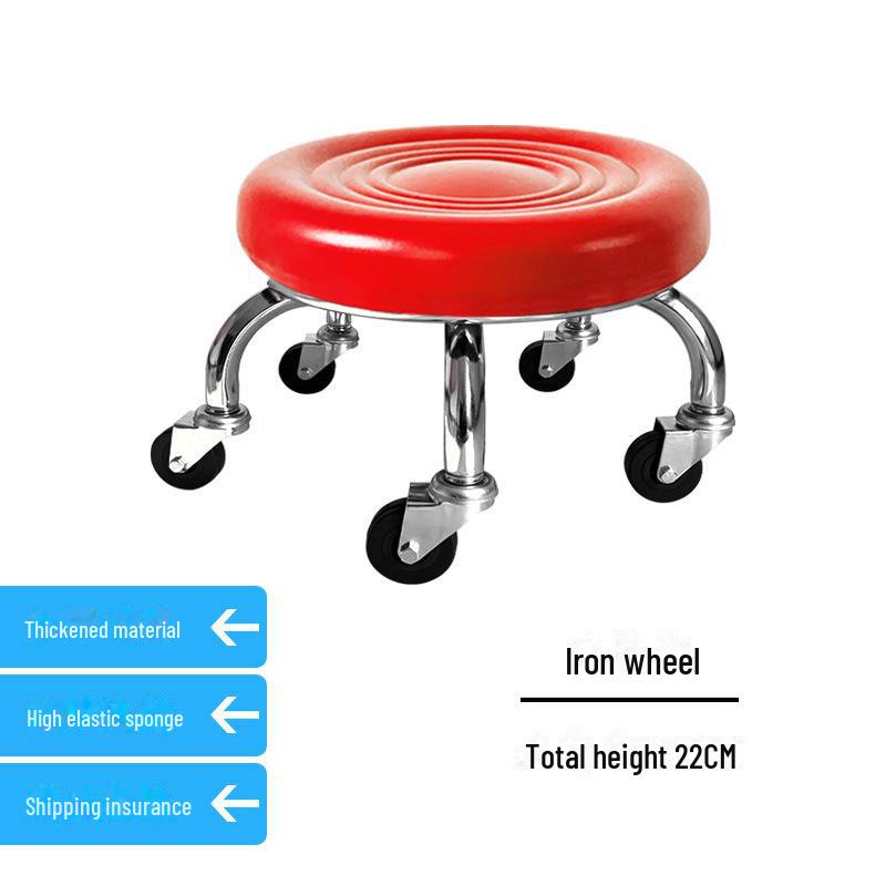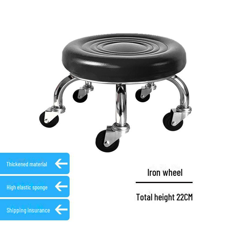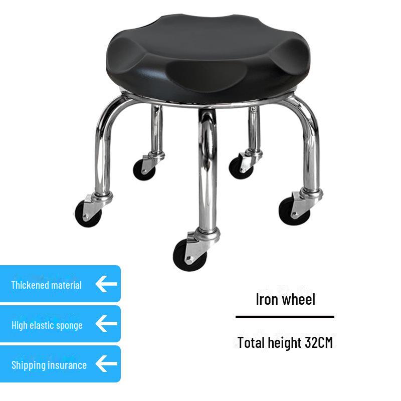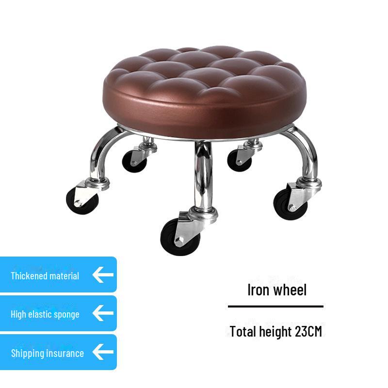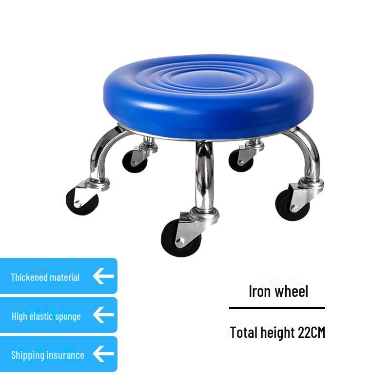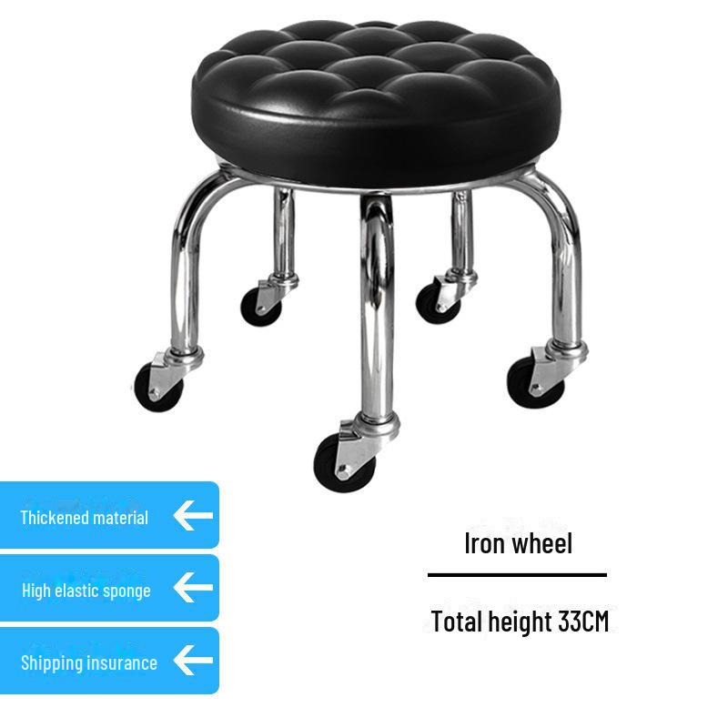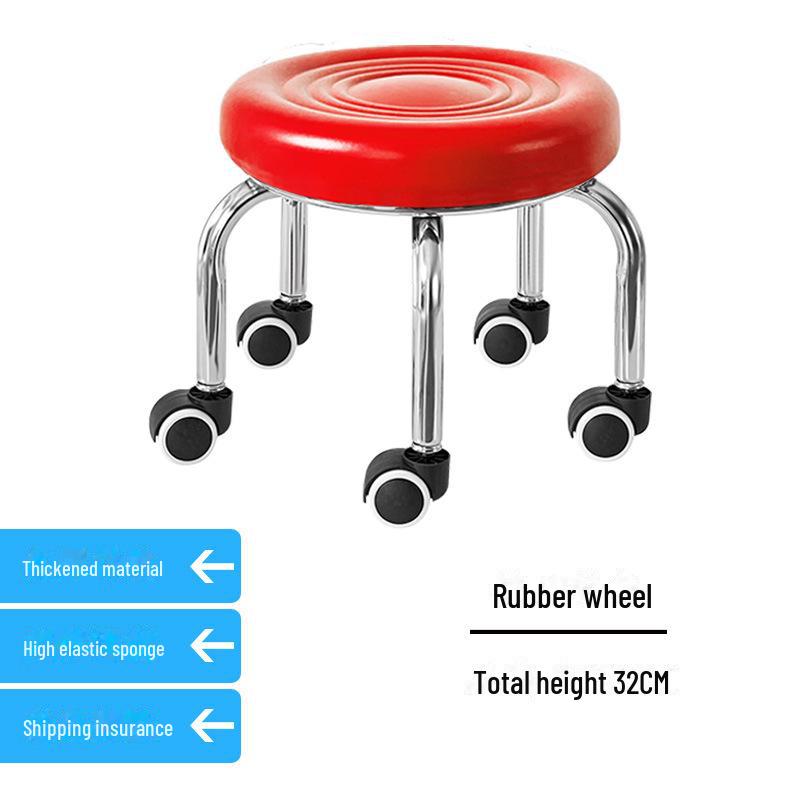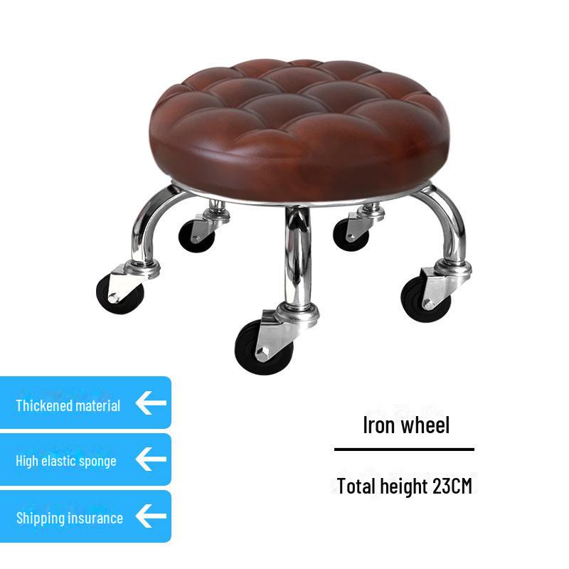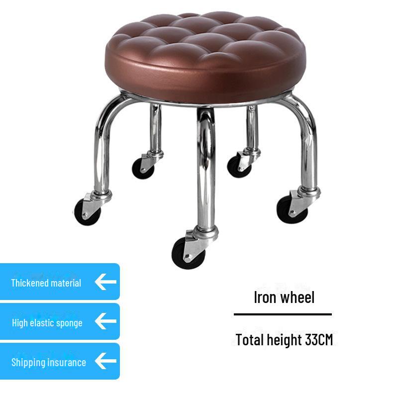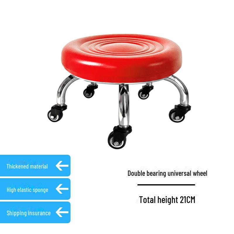 Бесшумный мобильный косметологический стул с универсальными колесами — многофункциональный, низкопрофильный, круглый дизайн для использования дома или в студии.