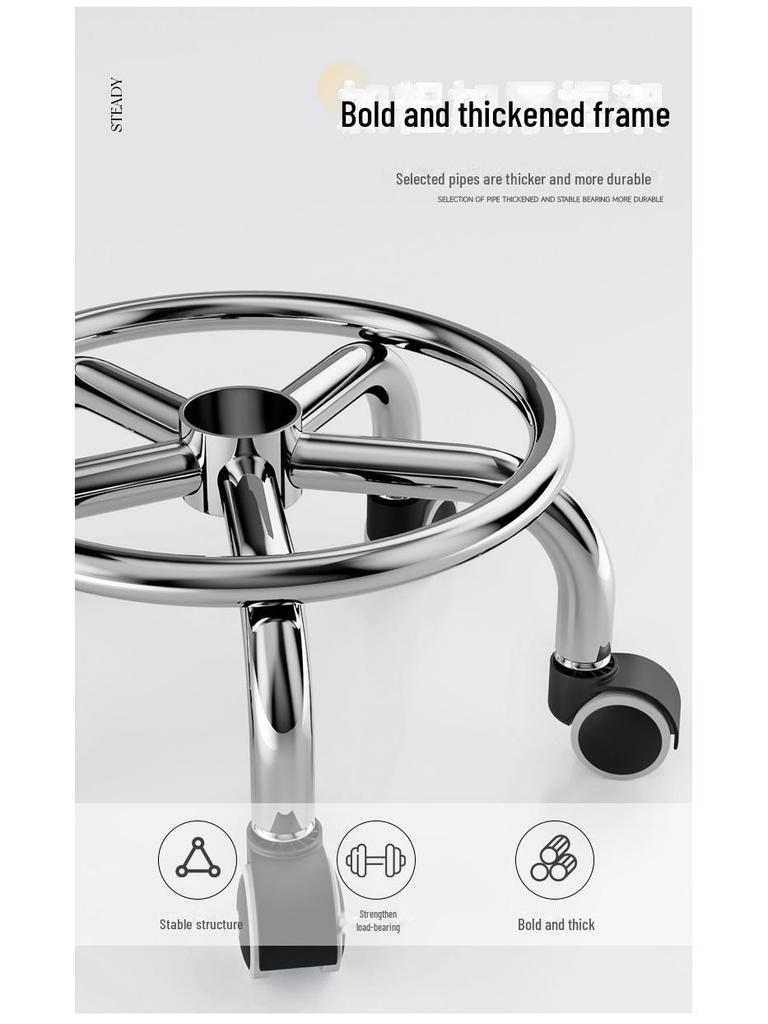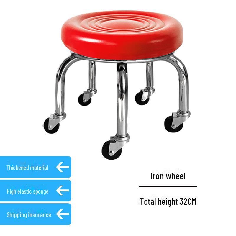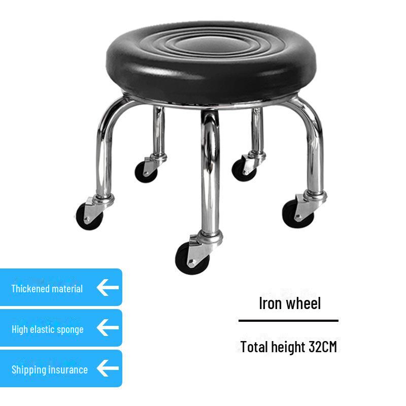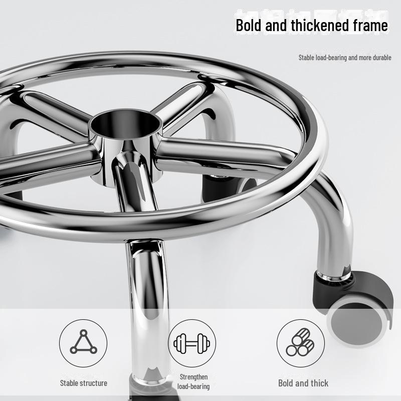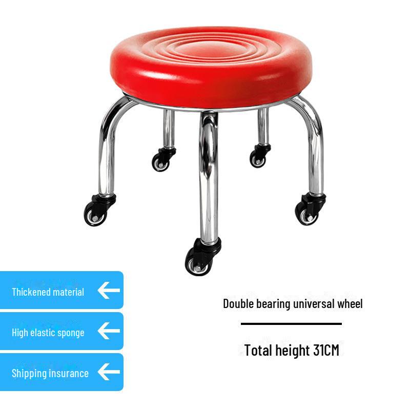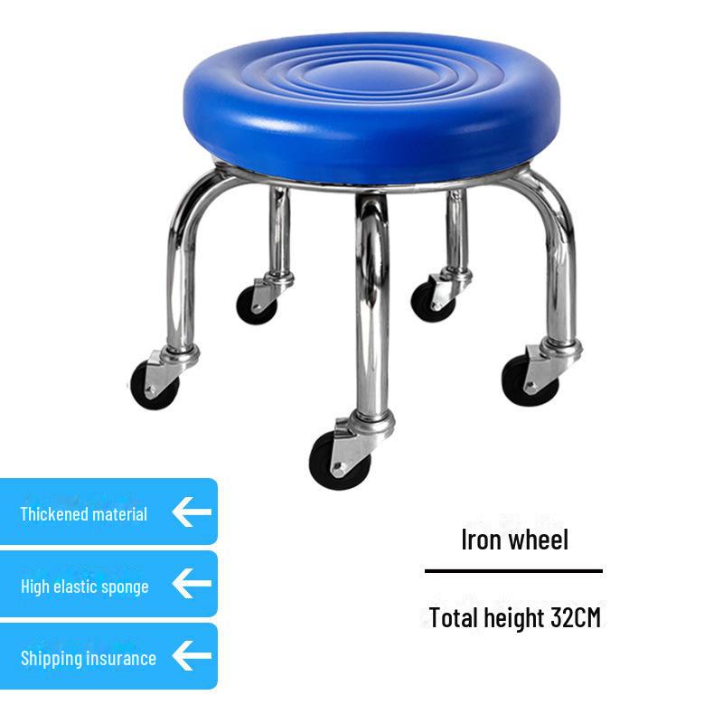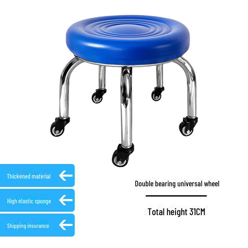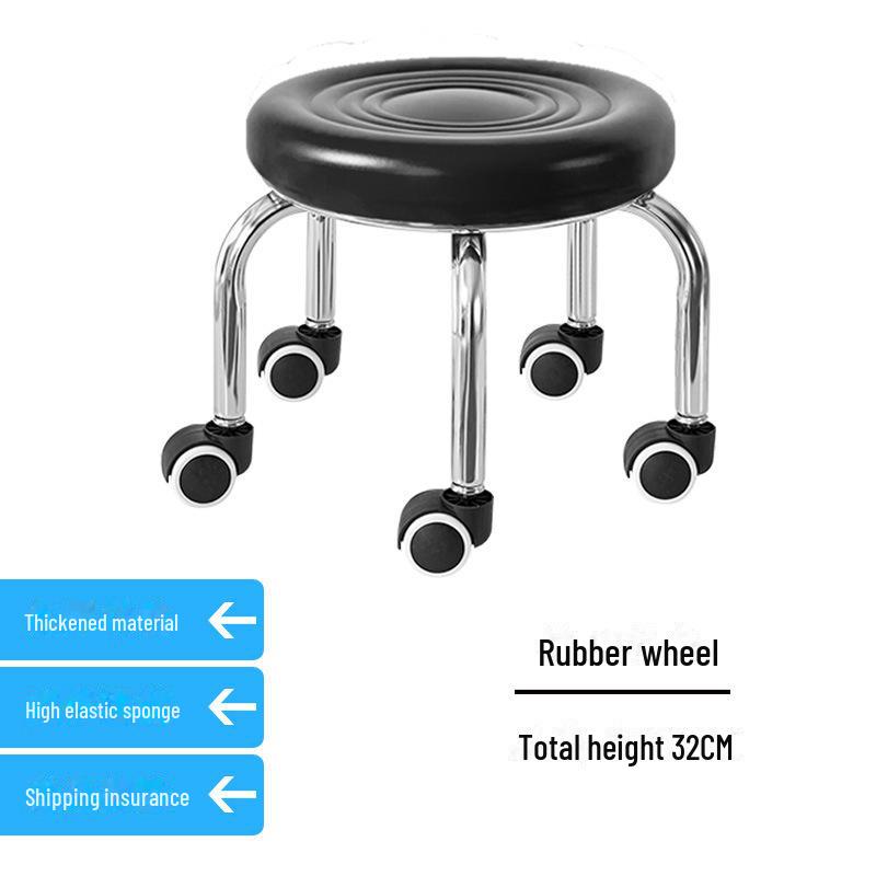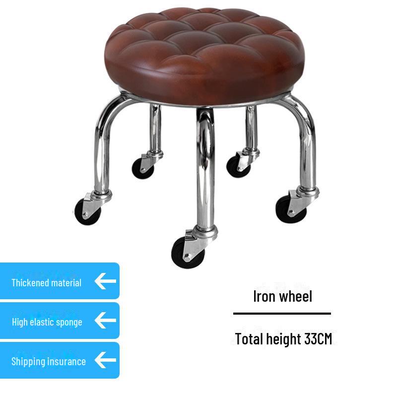 Бесшумный мобильный косметологический стул с универсальными колесами — многофункциональный, низкопрофильный, круглый дизайн для использования дома или в студии.