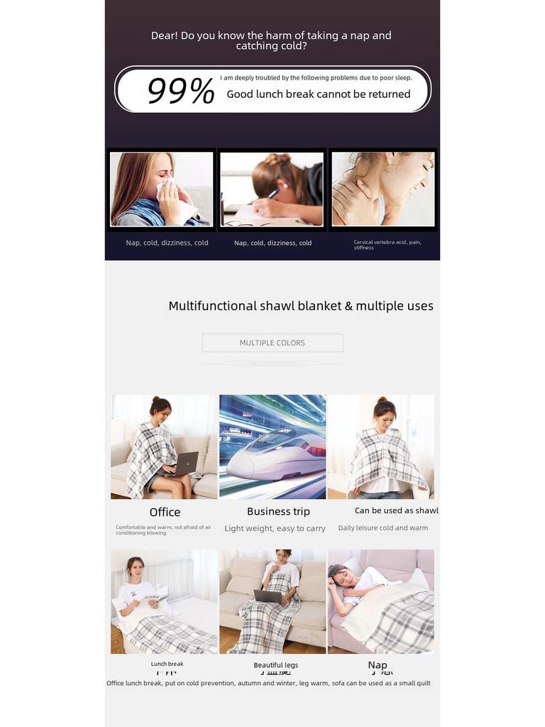 Теплый плед-шаль двойного назначения - двухслойный, плотный, идеально подходит для сна в офисе или отдыха