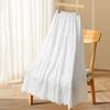 DIMANAF 2025 Лето Женские Белые Юбки Винтажные Эластичные Плиссированные Элегантные Длинные Юбки Новое Кружево Высокая Талия