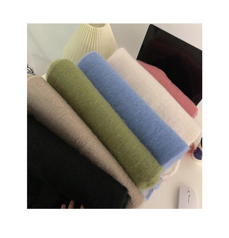 Женский однотонный мохеровый шарф: Плотная плетеная шаль для осени и зимы 2024 года