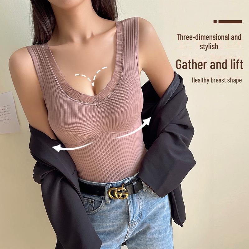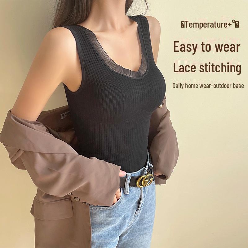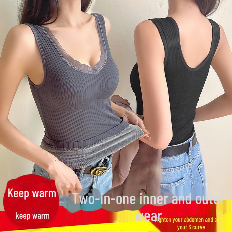 Женский облегающий эластичный теплый жилет с подтяжками на груди и бархатными подтяжками, базовый слой на осень/зиму.