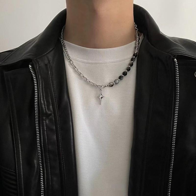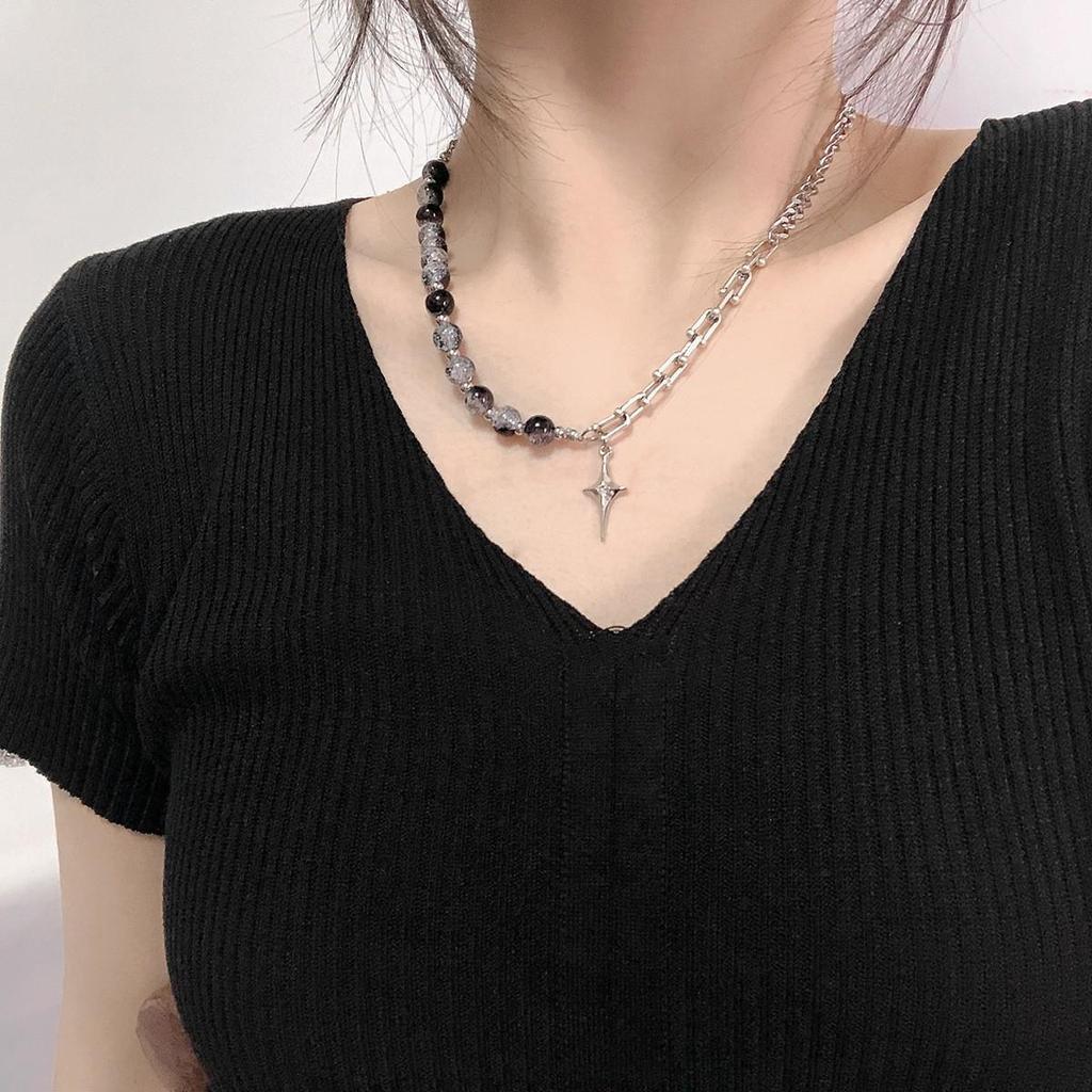 Унисекс-ожерелье в стиле хип-хоп на ключицу с креативными стеклянными бусинами и подвеской в виде четырехконечной звезды