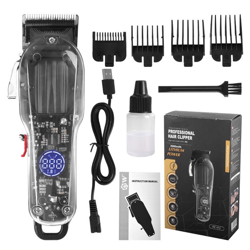 Прозрачная профессиональная электрическая машинка для стрижки волос с многоскоростной регулировкой и ЖК-дисплеем