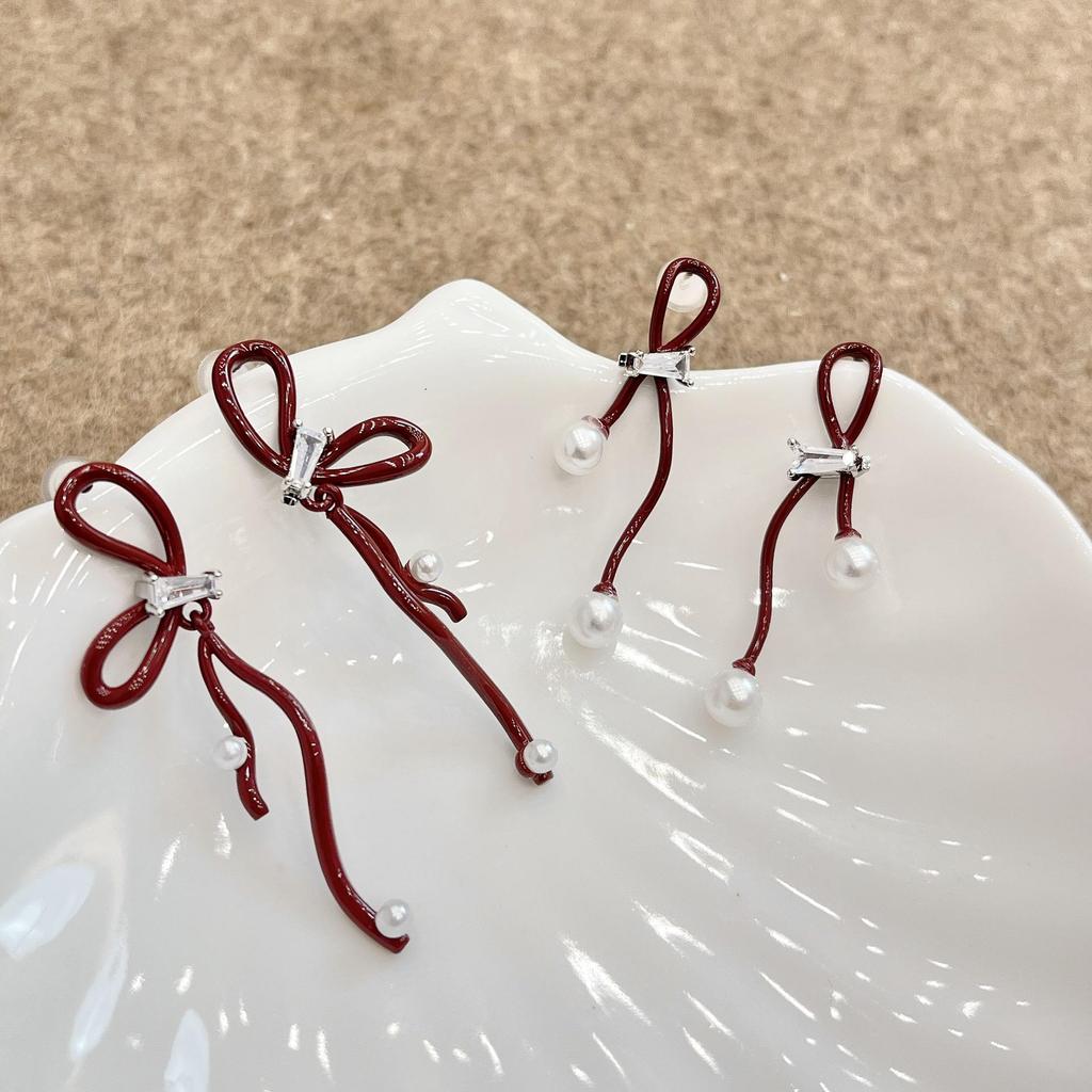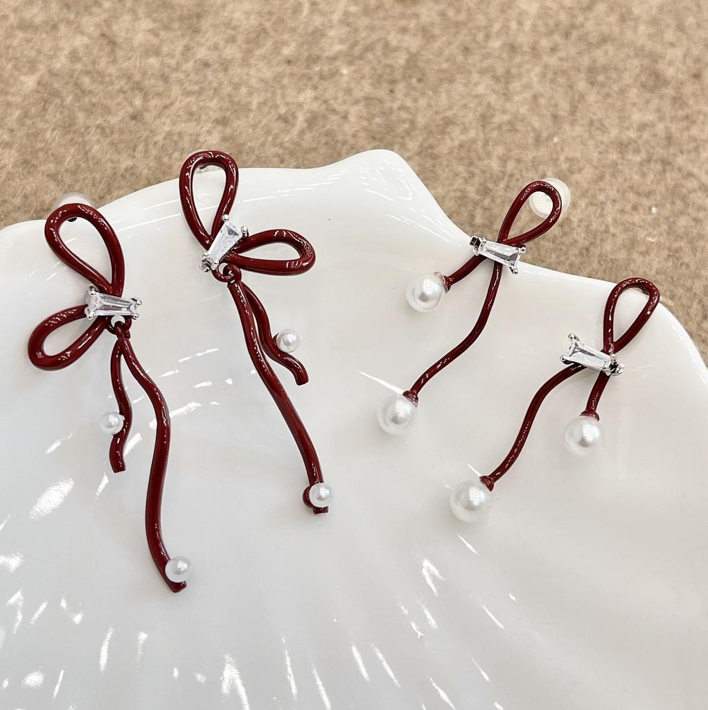 Серьги-бантики Ankola Red в гонконгском стиле для женщин - 2024 High-End Niche Design