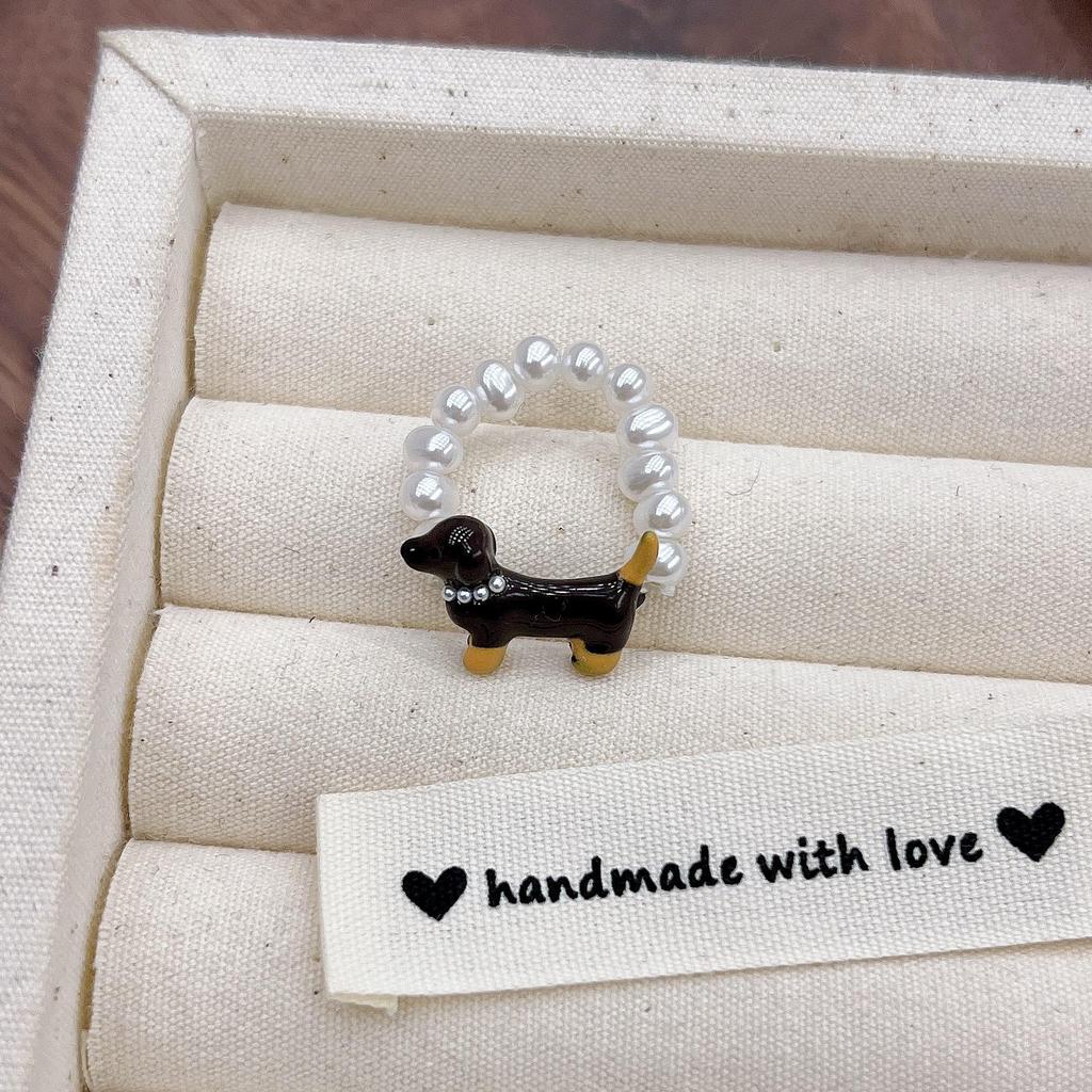 МодельRR787 Кольцо с жемчугом в виде таксы