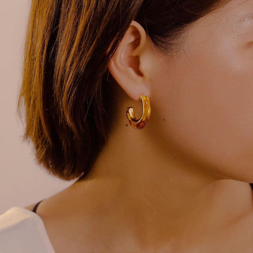 Геометрические серьги с позолотой из янтаря — коллекция Maillard осень/зима, эксклюзивный дизайн для поездок на работу и создания универсального стиля