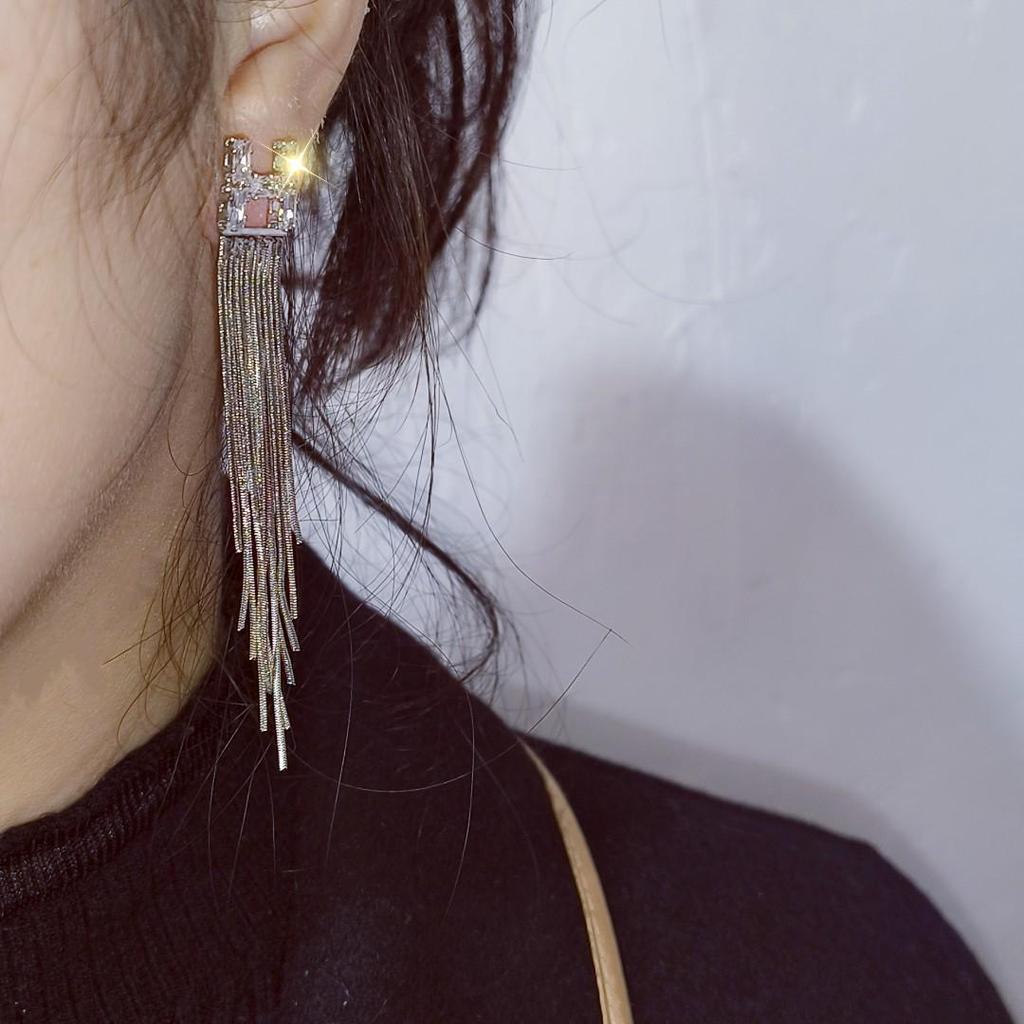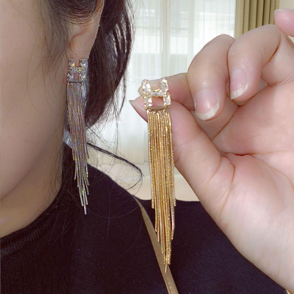 Элегантные корейские длинные серьги с кисточками из циркона в форме буквы H для женщин