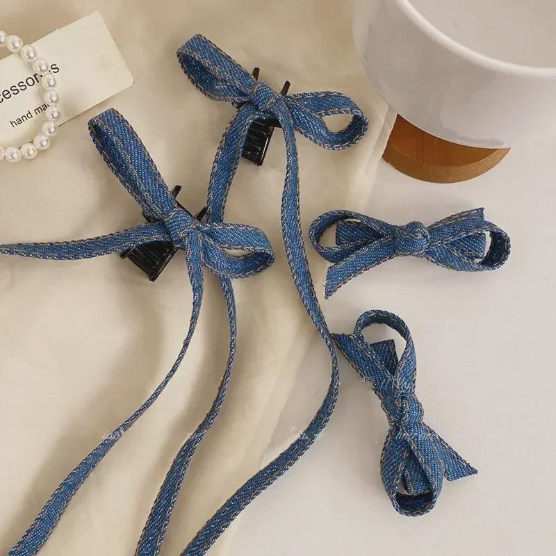 Синий бант Маленький зажим-утиный носик со стримером для укладки волос