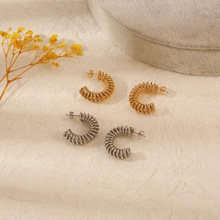 Европейский и американский твист: Серьги-пружинки из нержавеющей стали, женский нишевый дизайн, простые серьги из титана, украшения для ушей