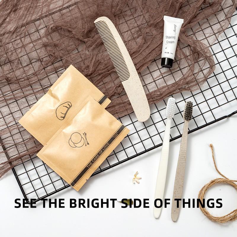 Одноразовые туалетные принадлежности для отеля B&B Kraft Paper Bag: Зубная щетка, зубная паста, гель для душа.