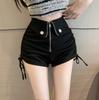 Черные шорты с высокой талией на кулиске - Женские А-силуэта суперкороткие шорты, Осень 2025 Нишевый дизайн
