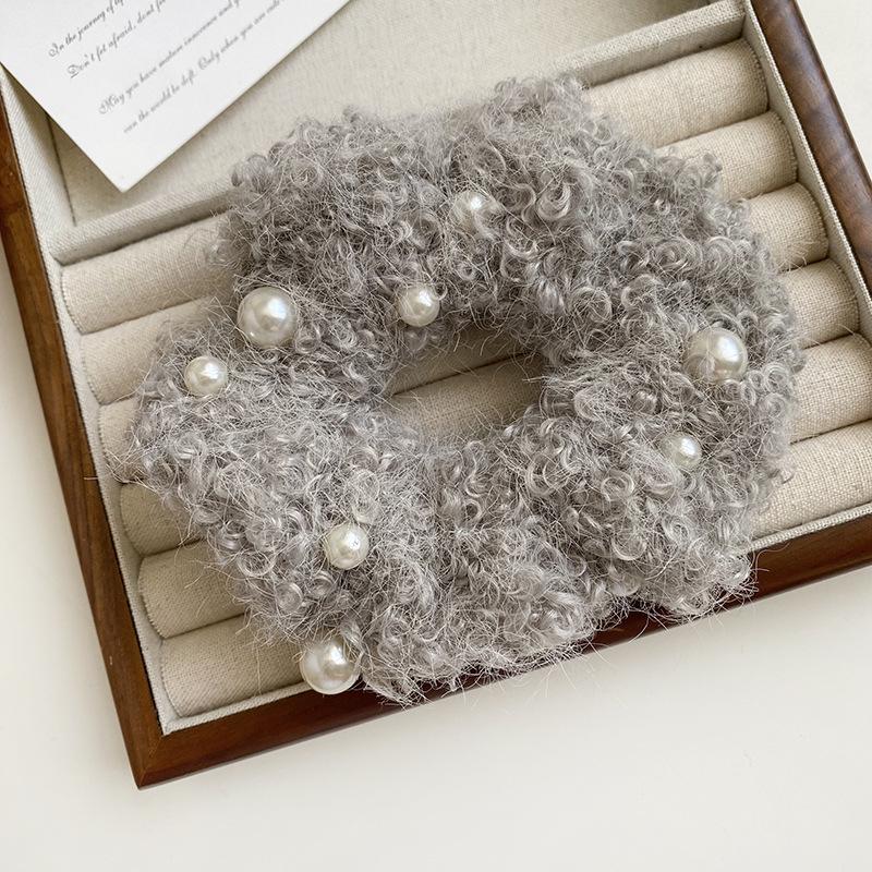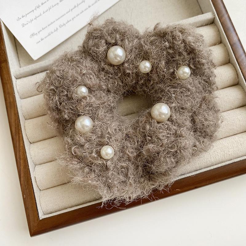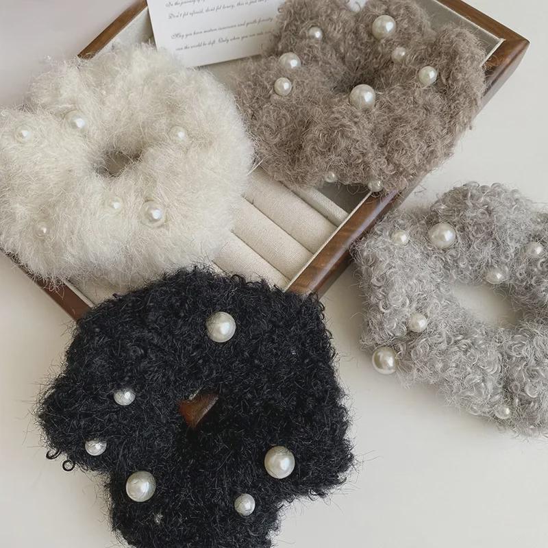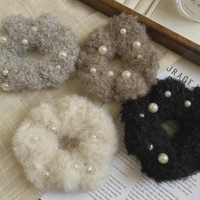 Корейская плюшевая резинка для волос с жемчугом на осень и зиму - женская простая милая резинка для волос