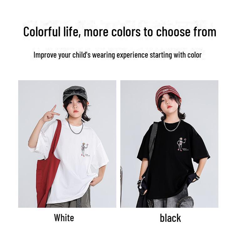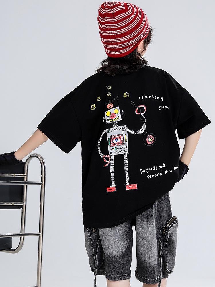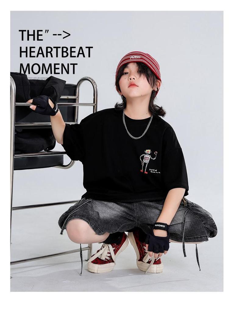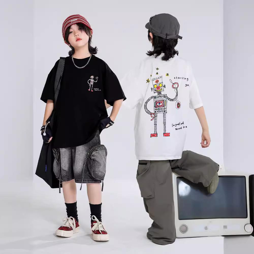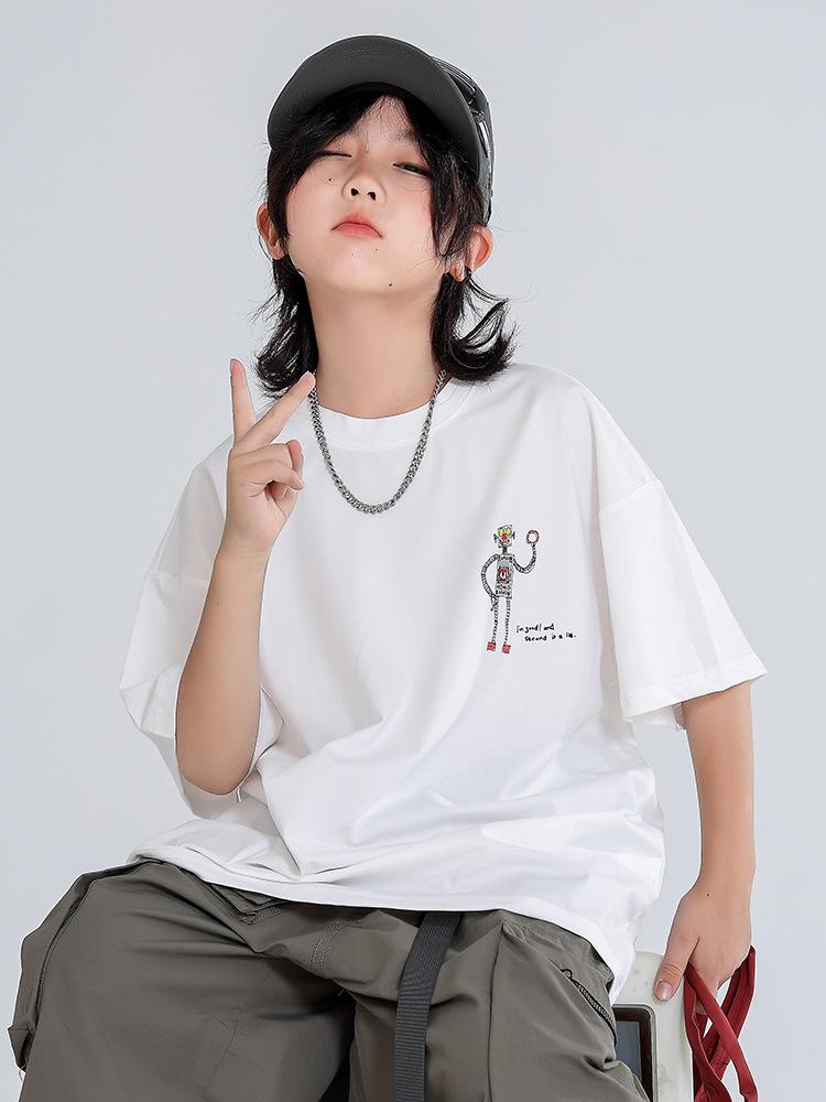 Эта очаровательная хлопковая футболка создана специально для мальчиков и украшена забавными мультяшными рисунками, которые обязательно понравятся. Изготовленный из высококачественного хлопка, он мягкий и дышащий, идеально подходит для повседневной носки.. Благодаря коротким рукавам эта футболка идеально подходит для сохранения прохлады и комфорта в теплые месяцы.. Яркие и веселые мультяшные узоры добавляют нотку корейского стиля, делая эту модель яркой деталью гардероба любого мальчика.