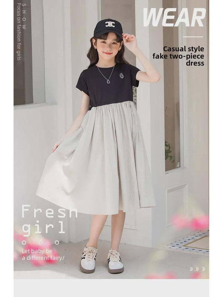 Почувствуйте яркий дух лета 2025 года с этим стильным платьем-футболкой с короткими рукавами контрастного цвета для девочек.. Эта тонкая юбка в корейском стиле, выполненная из мягкого и дышащего хлопка, обеспечивает комфорт и элегантный вид.. Платье выполнено в ярких контрастных цветах, которые добавляют игривости и идеально подходят для повседневных прогулок или веселых встреч.. Короткие рукава и легкая ткань сохранят прохладу и позволят вам выглядеть модно в теплые дни.. Это платье идеально подойдет молодым поклонницам моды и гармонично сочетает в себе комфорт и последние тенденции.