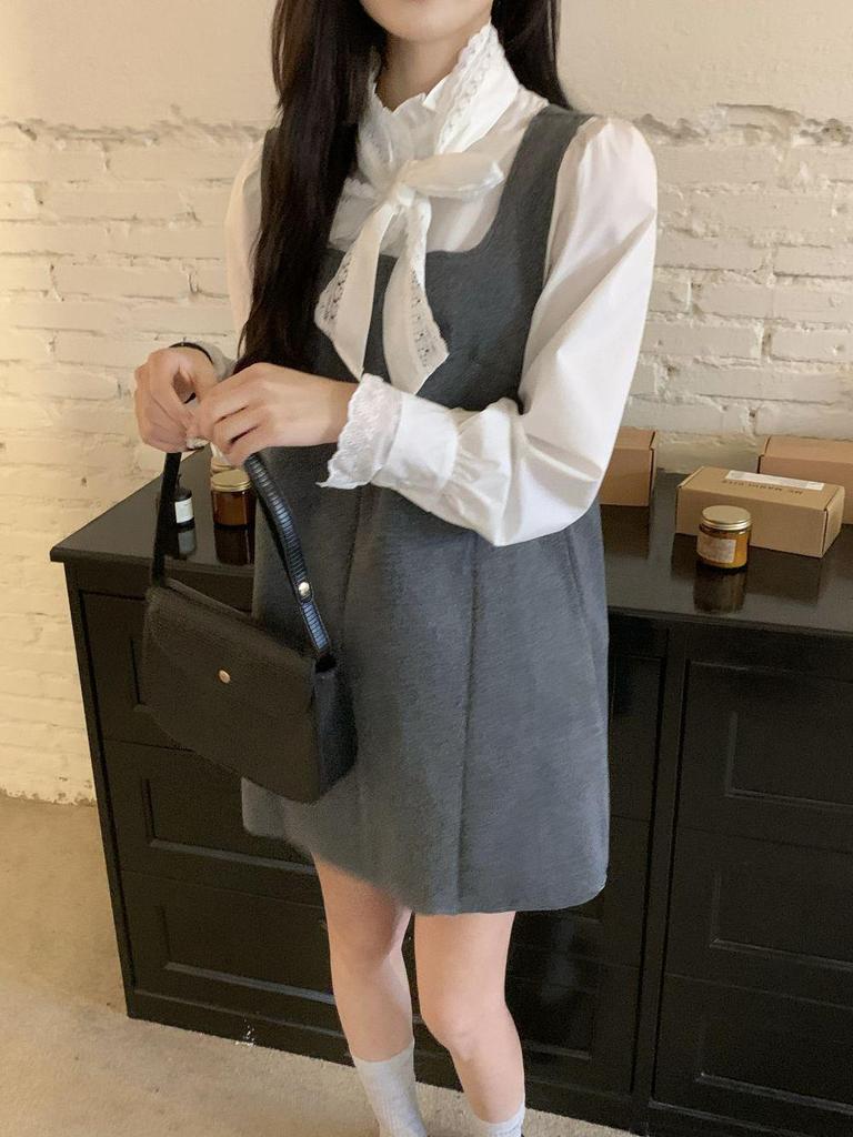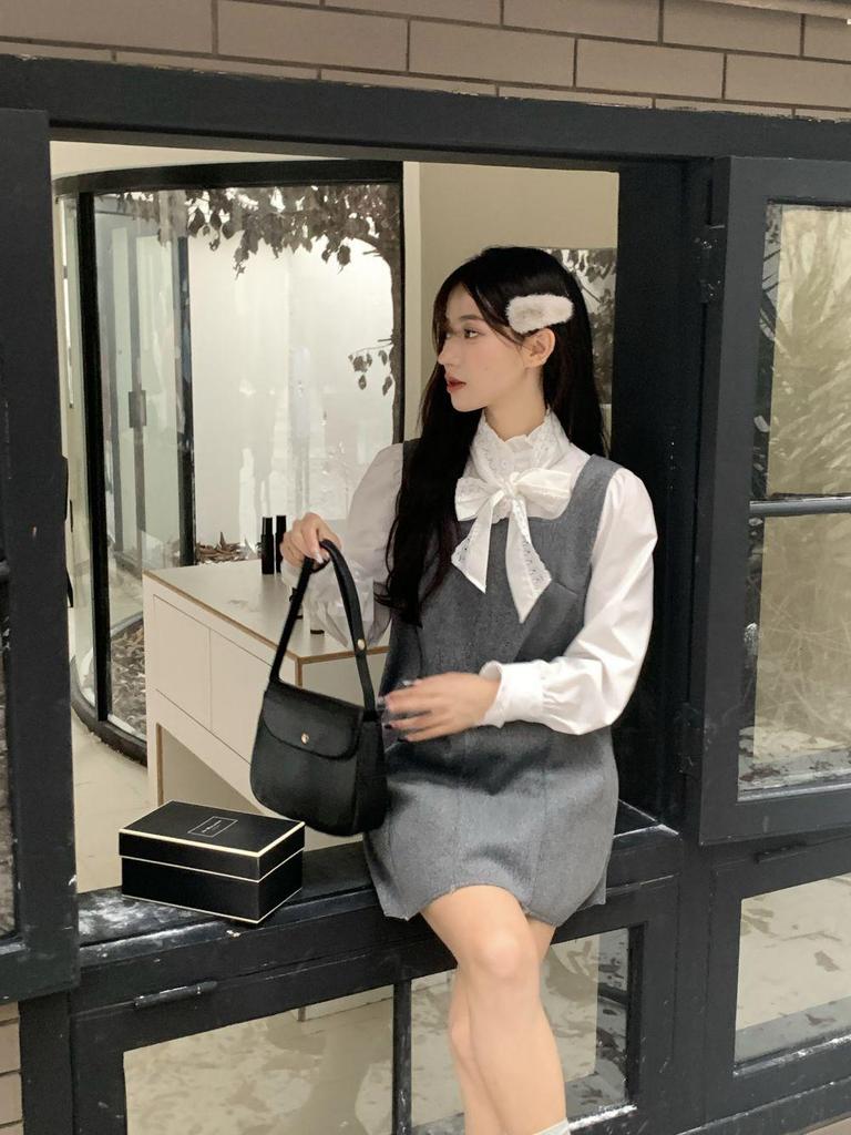 Женское серое платье на подтяжках с квадратным вырезом — стиль Sweet or Salty, осень/зима 2023 г., свободный облегающий крой, многослойная короткая юбка.