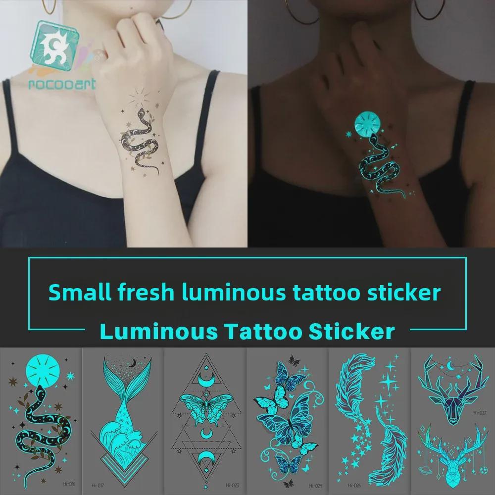 Светящиеся синие водонепроницаемые наклейки для татуировок: Дизайны змей и бабочек для музыкальных фестивалей