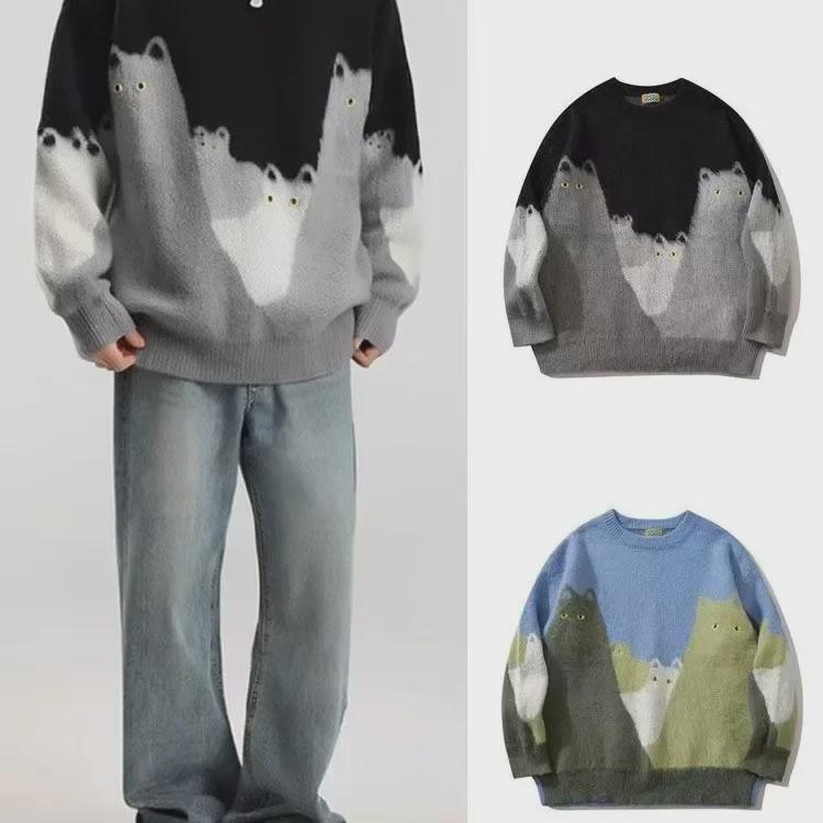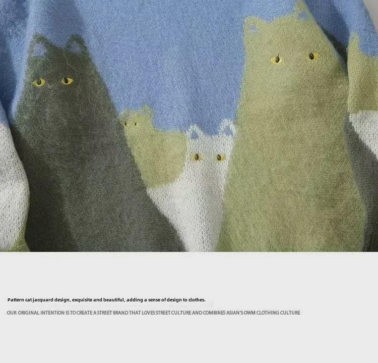 Почувствуйте уют и комфорт в этом стильном свитере с очаровательным рисунком в виде кошки, выполненным в жаккардовой вязке.. Этот свитер идеально подходит для осени и зимы, он имеет свободный крой и длинные рукава, что делает его идеальным для повседневных случаев.. Круглый вырез горловины придает изделию классический вид, а вискозный материал обеспечивает мягкость и роскошное ощущение на коже.. Наслаждайтесь теплом и комфортом с этим восхитительным дополнением к вашему гардеробу.