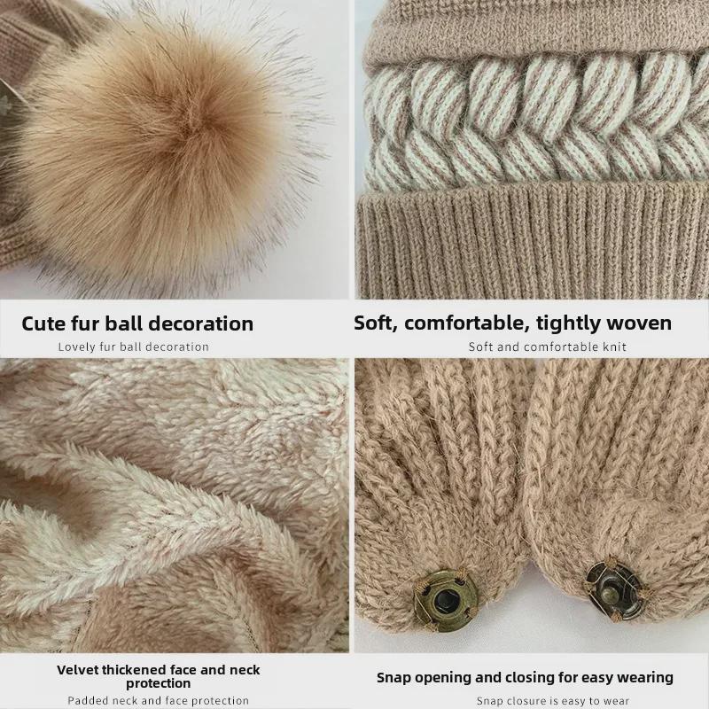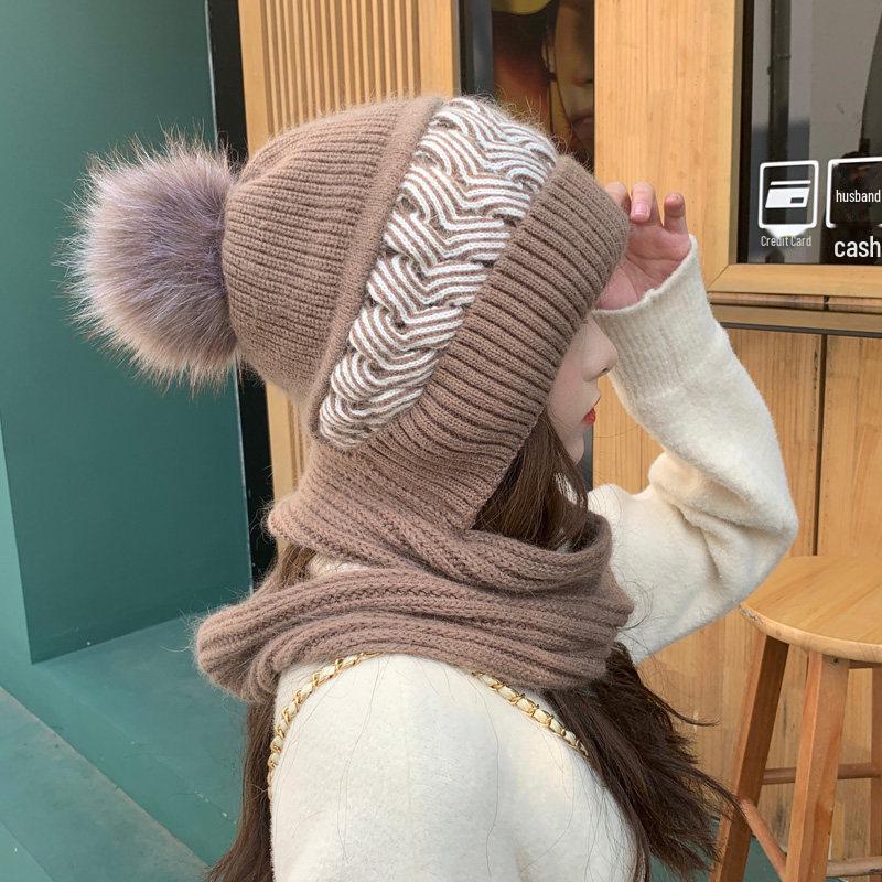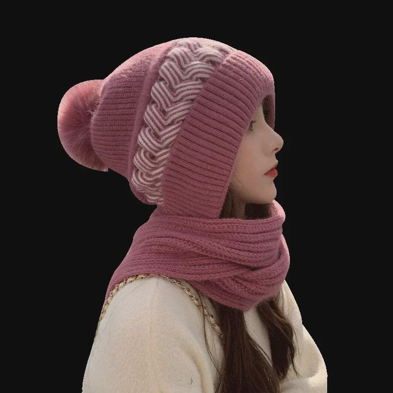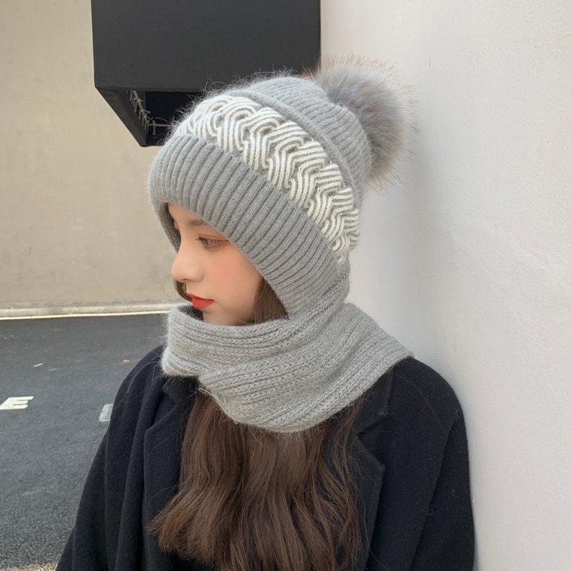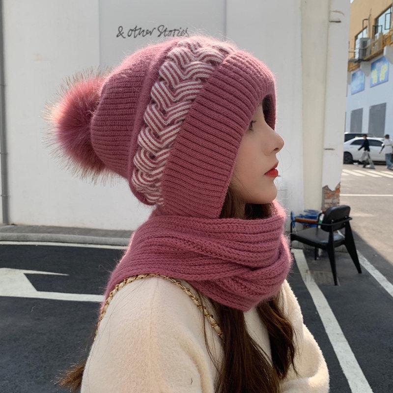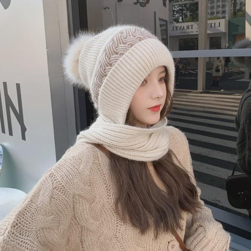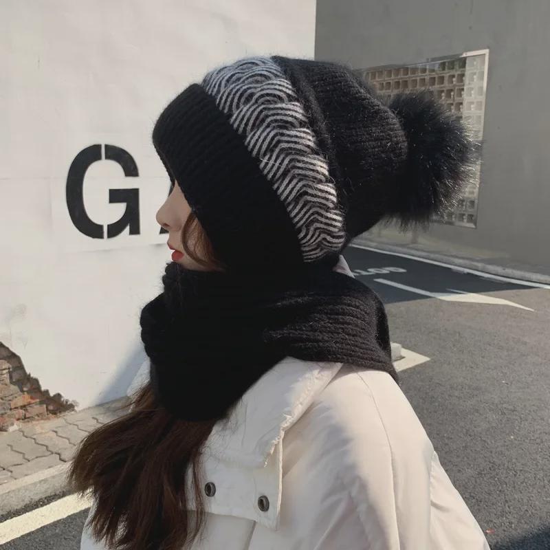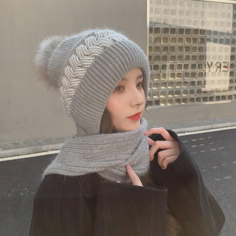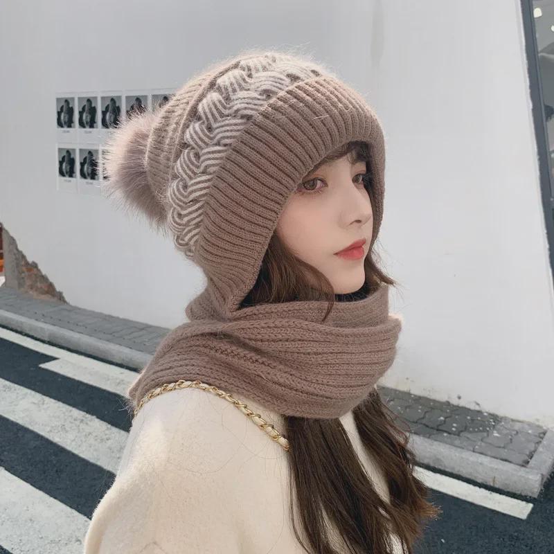 Женский комплект из шерстяной шапки и шарфа в корейском стиле – симпатичный, холодостойкий, защита ушей и шеи на осень/зиму