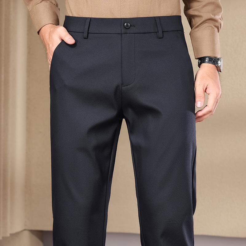 Представляем наши мужские брюки в деловом стиле, созданные для современных джентльменов, ищущих стиль и комфорт.. Эти брюки имеют новый свободный крой, который идеально подходит как для офиса, так и для повседневной носки.. Изготовленные из высококачественной смеси шелка тутового шелкопряда и вискозы, они гладкие и роскошные на ощупь, а также обеспечивают воздухопроницаемость.. Противоморщинные свойства и эластичный пояс обеспечивают удобство и легкость, что делает их идеальными для длительного ношения осенью и зимой.. Эти брюки прямого кроя из плотной, но легкой ткани сочетают в себе элегантность и практичность, что делает их незаменимым дополнением к вашему гардеробу.