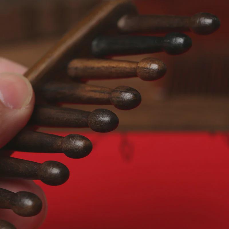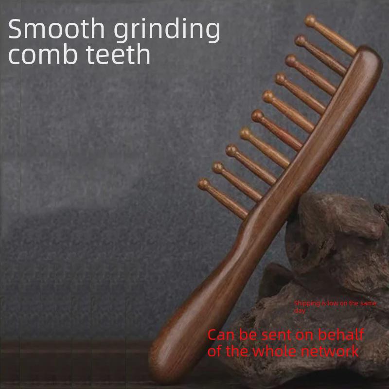 Расческа с двойным рядом зубцов из сандалового дерева золотого и зеленого цвета для вьющихся волос