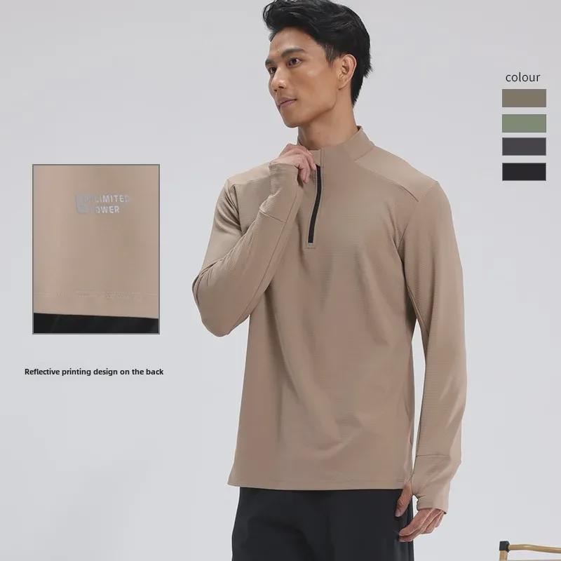Представляем идеальный пуловер для любителей фитнеса, изготовленный из высокоэффективного полиэстерового материала. Этот беговой топ с длинным рукавом имеет воротник-стойку и удобную конструкцию с половинной молнией, что делает его идеальным для универсальной многослойности и быстрой регулировки температуры.. Его быстросохнущая технология гарантирует, что вы будете чувствовать себя комфортно и сухо во время интенсивных тренировок.. Специально разработанная защита пальцев добавляет дополнительный слой комфорта, что делает этот пуловер идеальным для всех ваших фитнес-тренировок.
