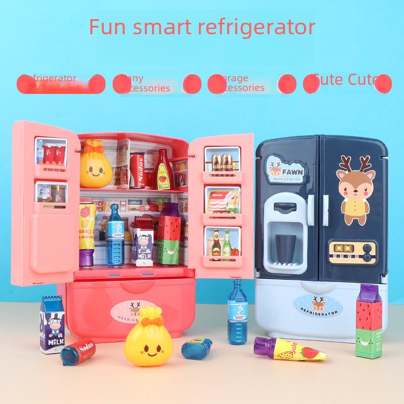 Умный мини-игрушка для кухни с двойной дверью для детей, игрушечный холодильник