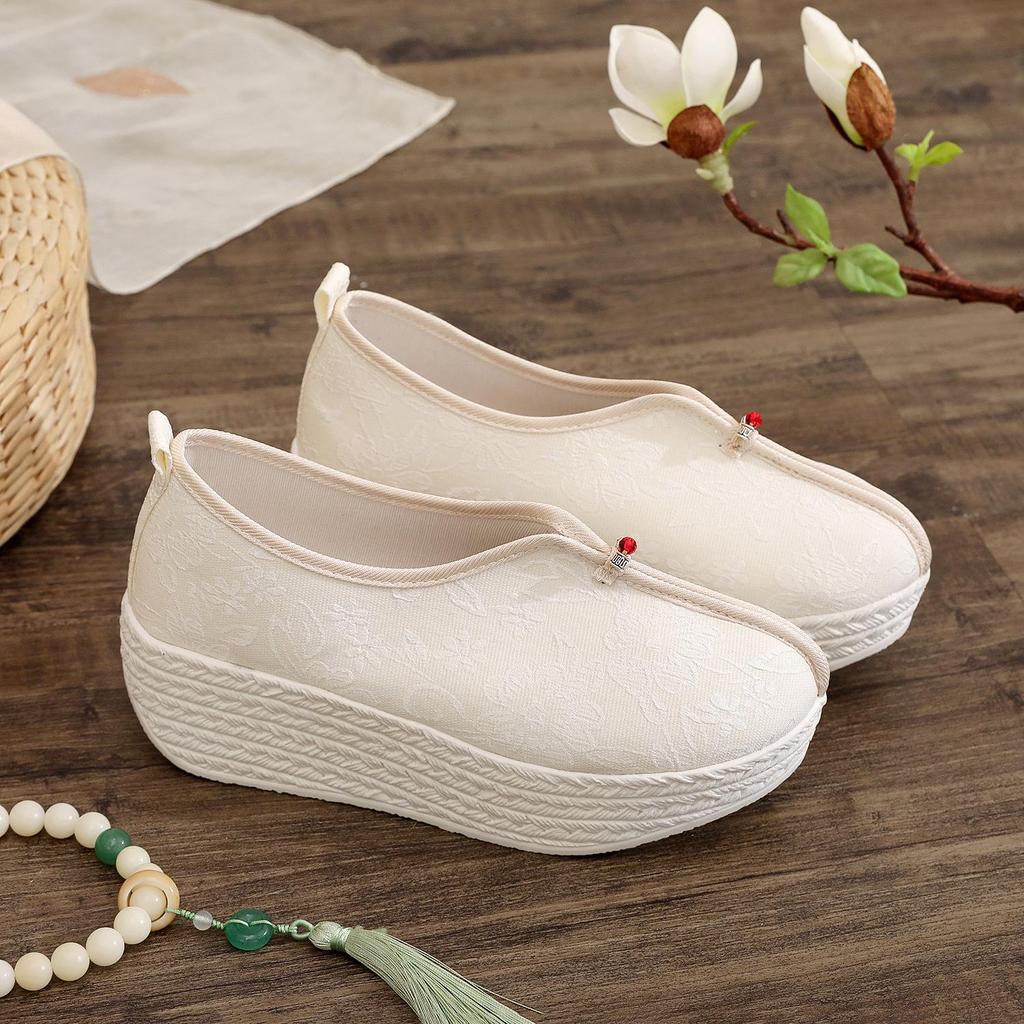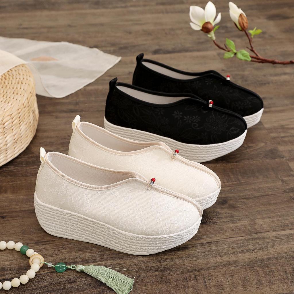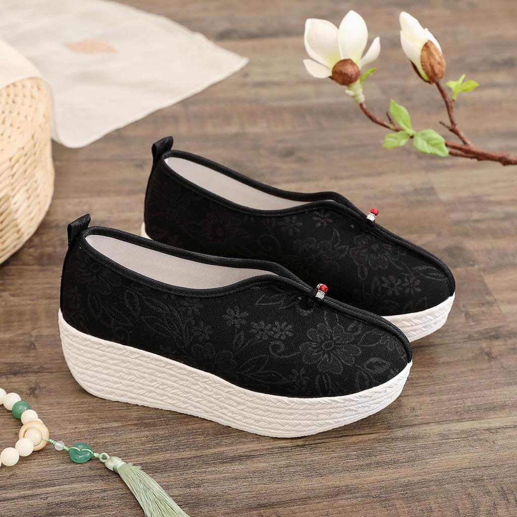 Эти женские туфли ханьфу представляют собой непреходящее сочетание традиций и комфорта.. Эти туфли с сплошным темным цветочным узором воплощают национальный стиль и дизайн, вдохновленный древней медитацией.. Изготовленные из прочного парусинового верха и мягкой резиновой подошвы, они обеспечивают легкость движений и гибкость.. Дышащая сетчатая подкладка сохраняет ноги в прохладе и комфорте в течение всего дня, а текстильная стелька обеспечивает дополнительную амортизацию.. Идеально подходит для студентов и тех, кто ищет сочетание классической эстетики и современного комфорта.