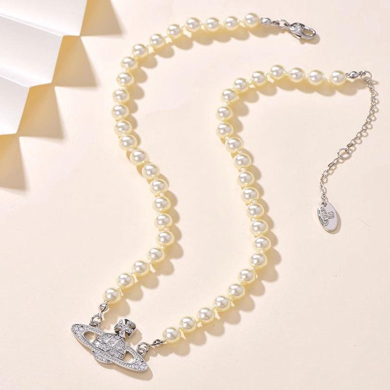 Женское невыцветающее ожерелье с жемчугом Сатурн Шицзя в форме планеты на ключице от королевы-матери — универсальная высококачественная цепочка