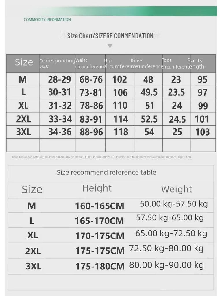 размер: 2XL, талия: 83-91cm, Бедро: 114см, Колено: 52,5 см, Стопа: 24,5 см, Длина брюк: 101см.